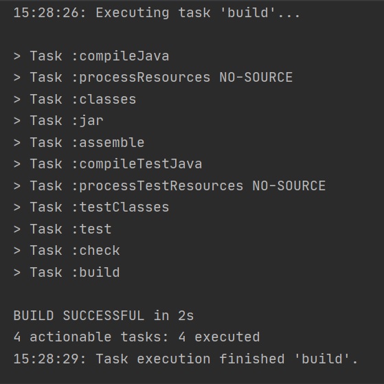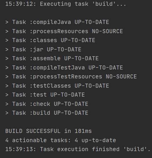 When you run the build phase a number of tasks are actually executed, you can see below that a total of 11 tasks ran. Gradle is also clever enough to know if parts of the project dont need rebuilding, you can see in the right-hand screenshot parts of the project are already UP-TO-DATE and thus nothing is done and thus time is saved.