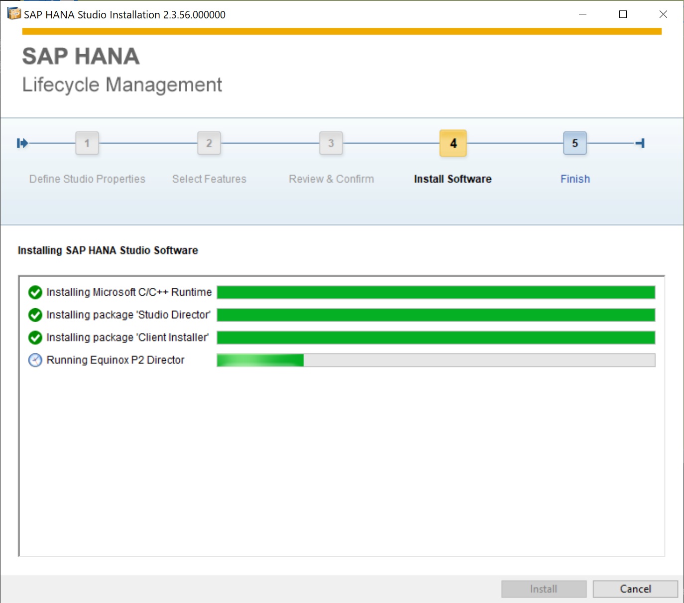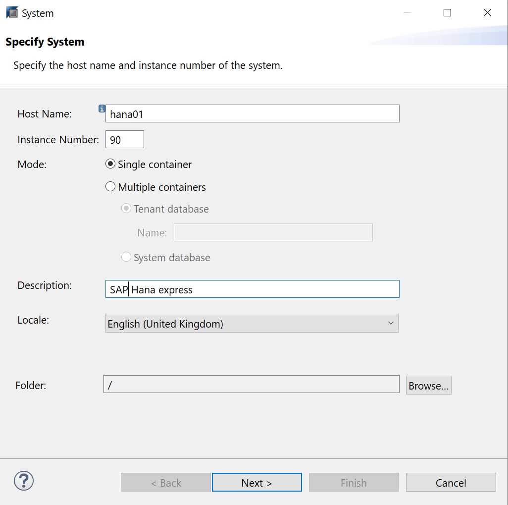 Next we enter the Hana database user SYSTEM and the password you configured during the setup