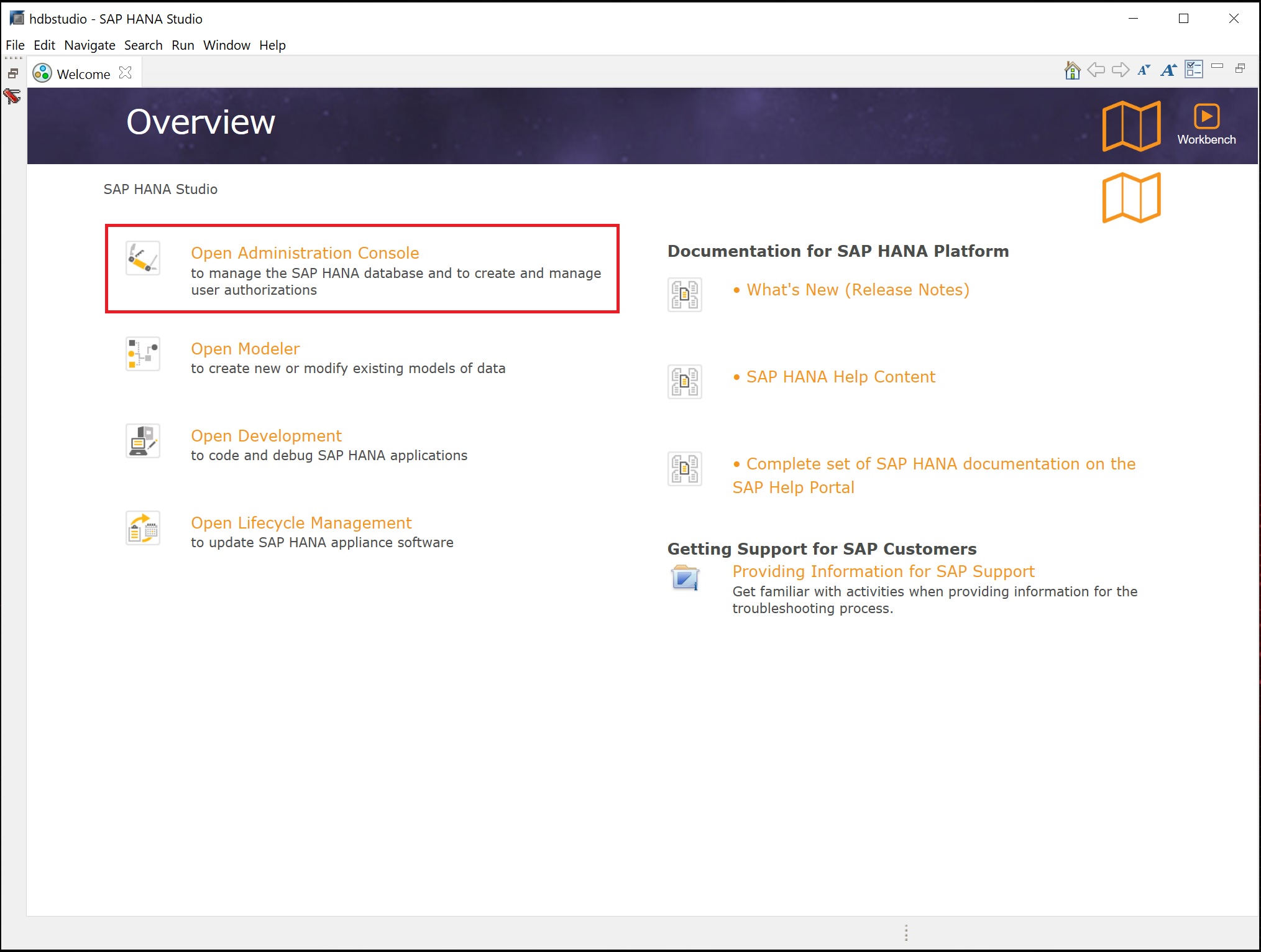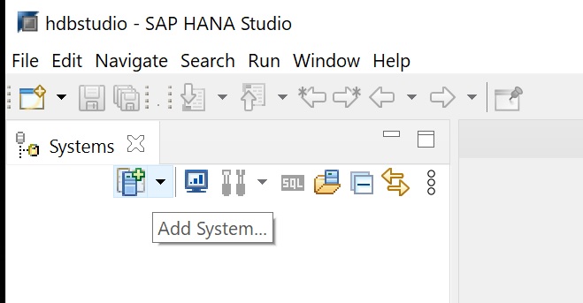 You are taken to main console screen, lets connect our SAP Hana instance to the studio, click the add system button