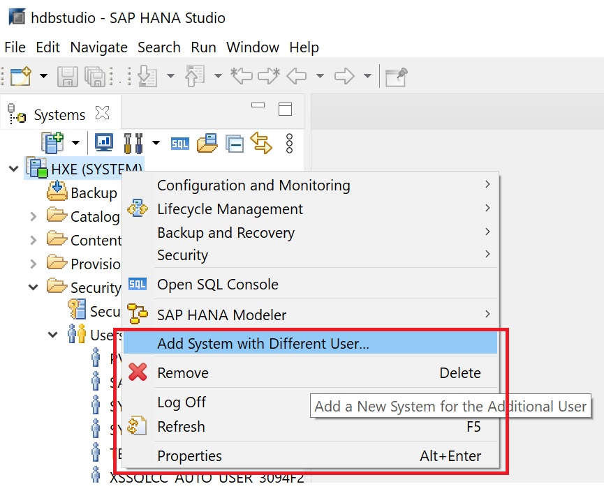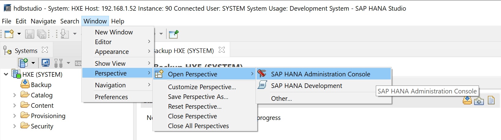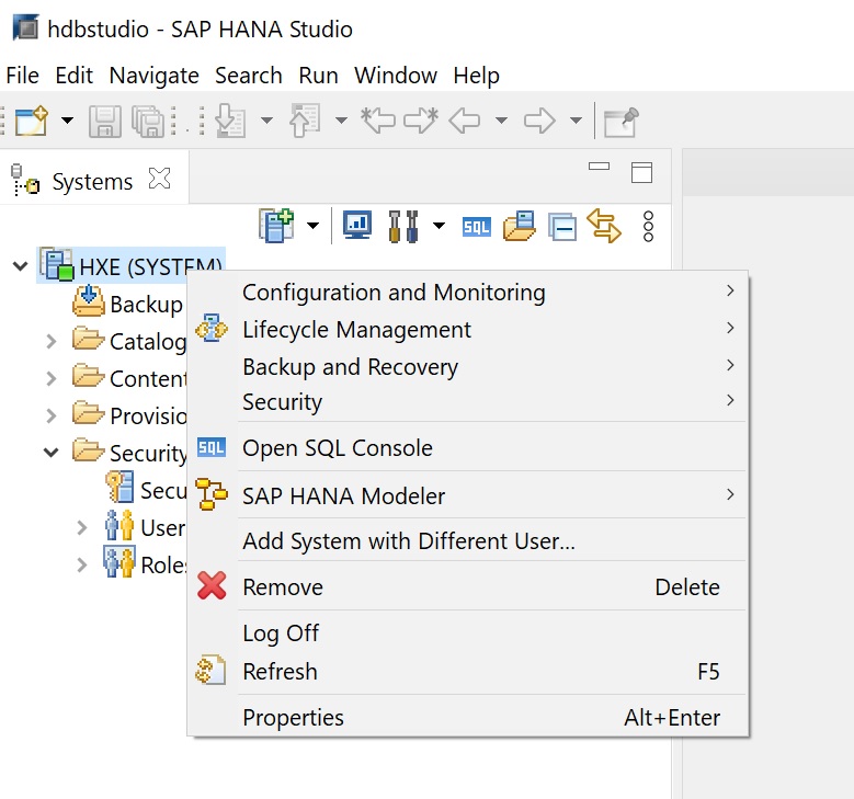 Lastly you can change how Hana studio looks like based on what role you do for example admin or developer.