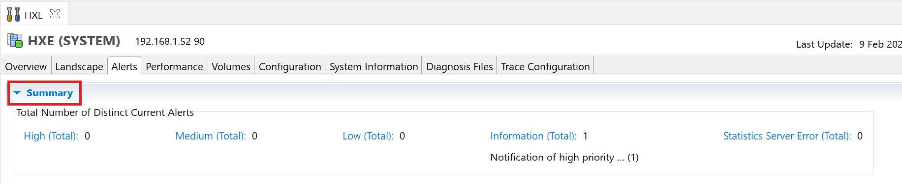 The alerts screen has a summary drop down at the top to give a summary of the alerts types