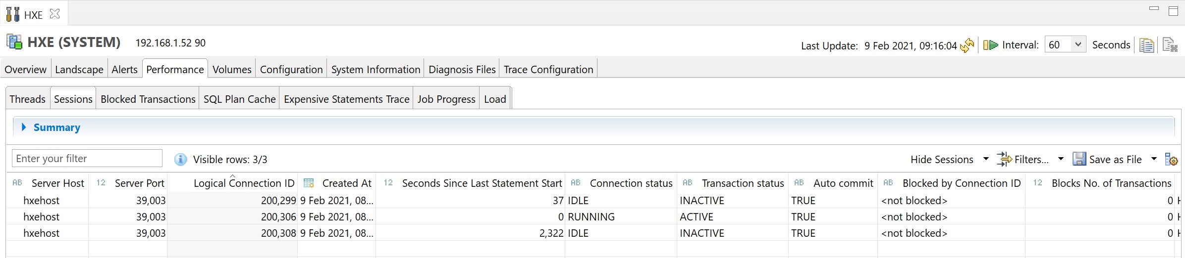 Next we look at the performance tab, here you have multiple tabs inside it to view threads, sessions, block transaction, etc again this can help with performance issues.