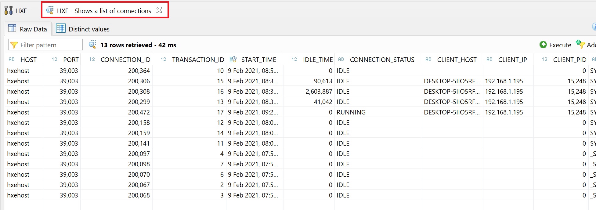 By selecting (running) one you are taken to a results screen, here you can see that I have run the show list of connections
