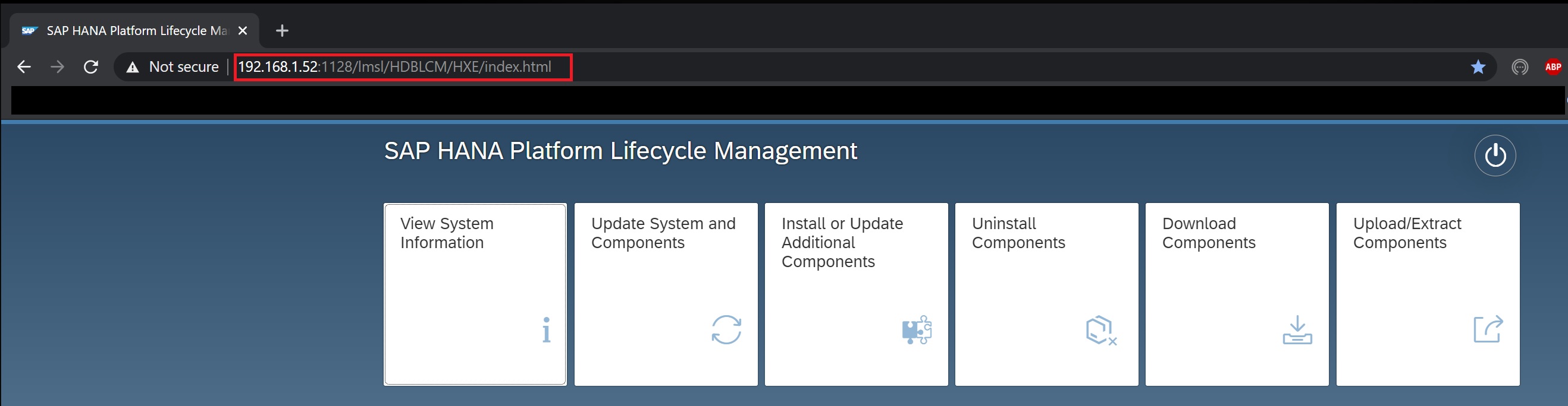 The lifecycle manager basically allows you to check if the system has any updates, and to apply them. I had issue accessing the lifecycle manager from with in the Hana studio, however you access it using the URL https://<server ip>:1128 (or port 1129). As you can see below it uses the new Fiori apps, here we have a number of options