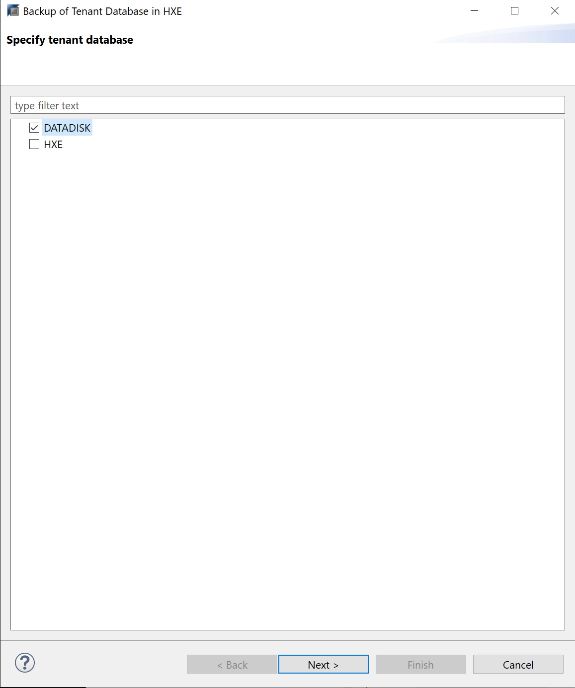 I have selected to backup a tenant, here I have a list of the two tenant databases that I have configured.