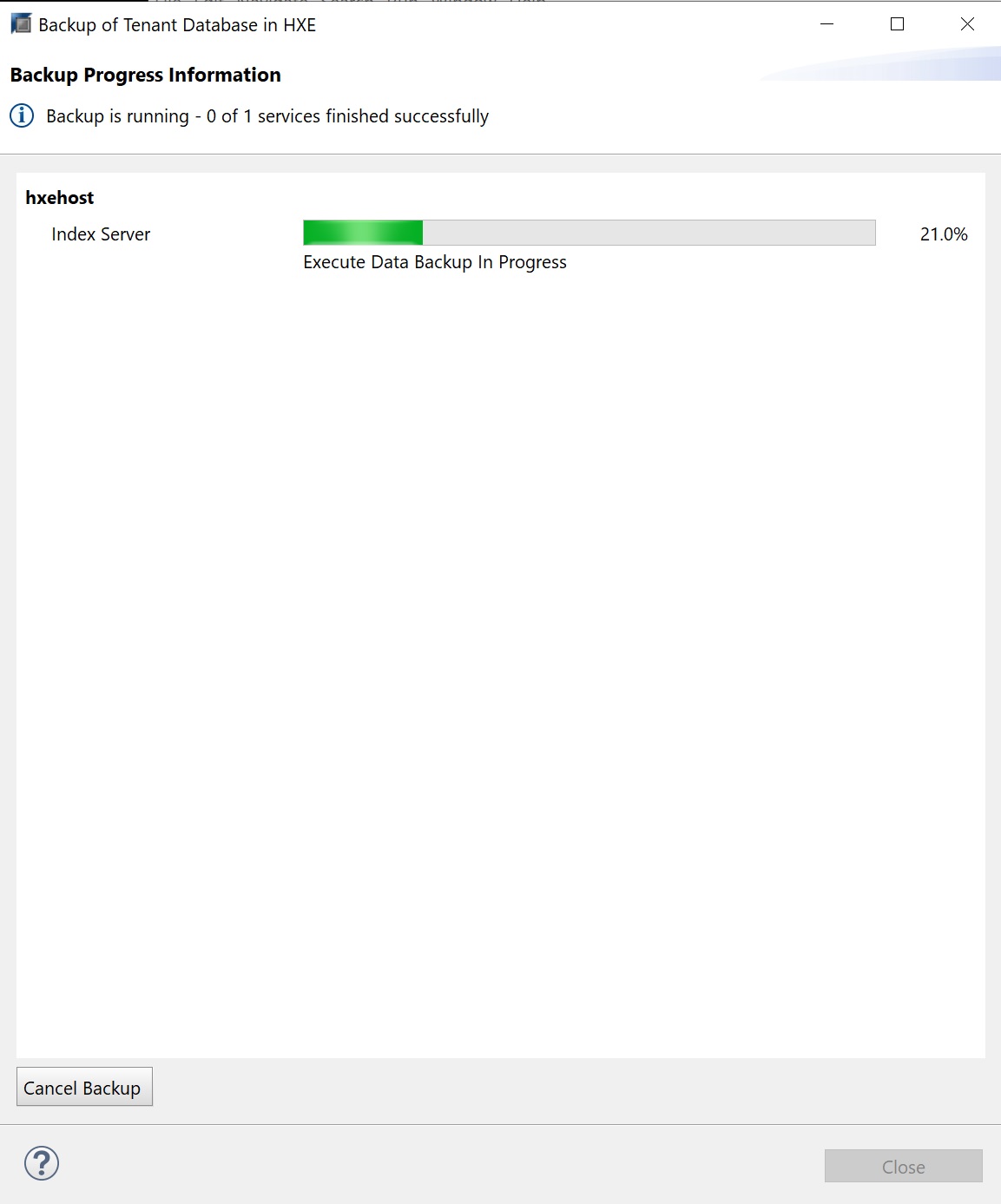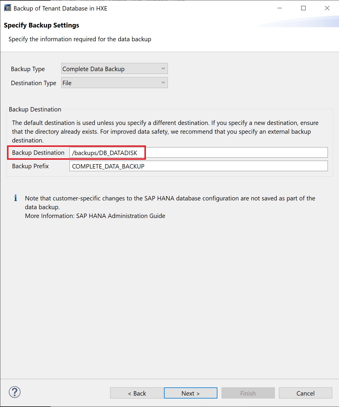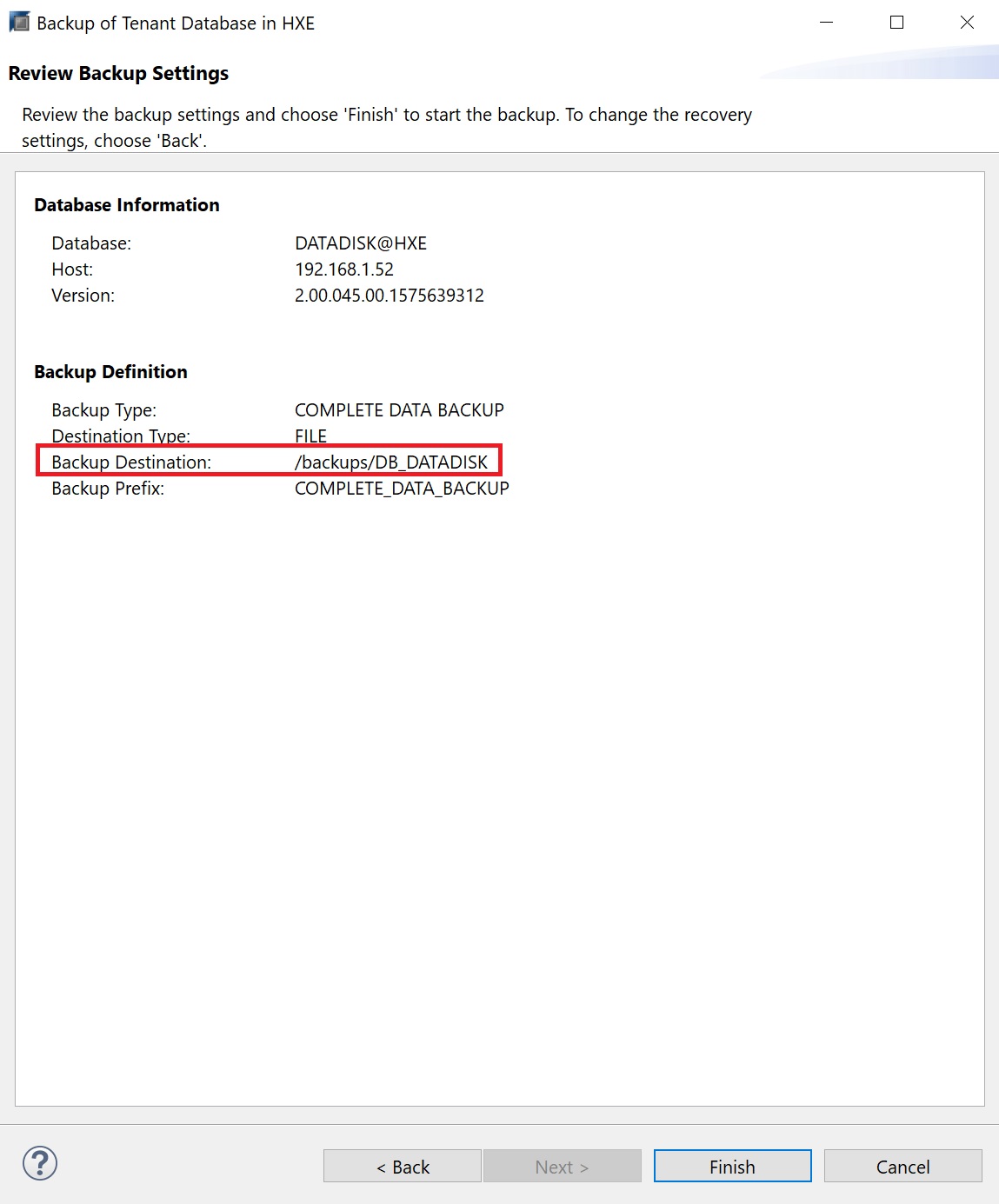 The backup screen lists the type of backup and the location which was automatically filled for me, as you can see tenant databases are backed up in there own directory.