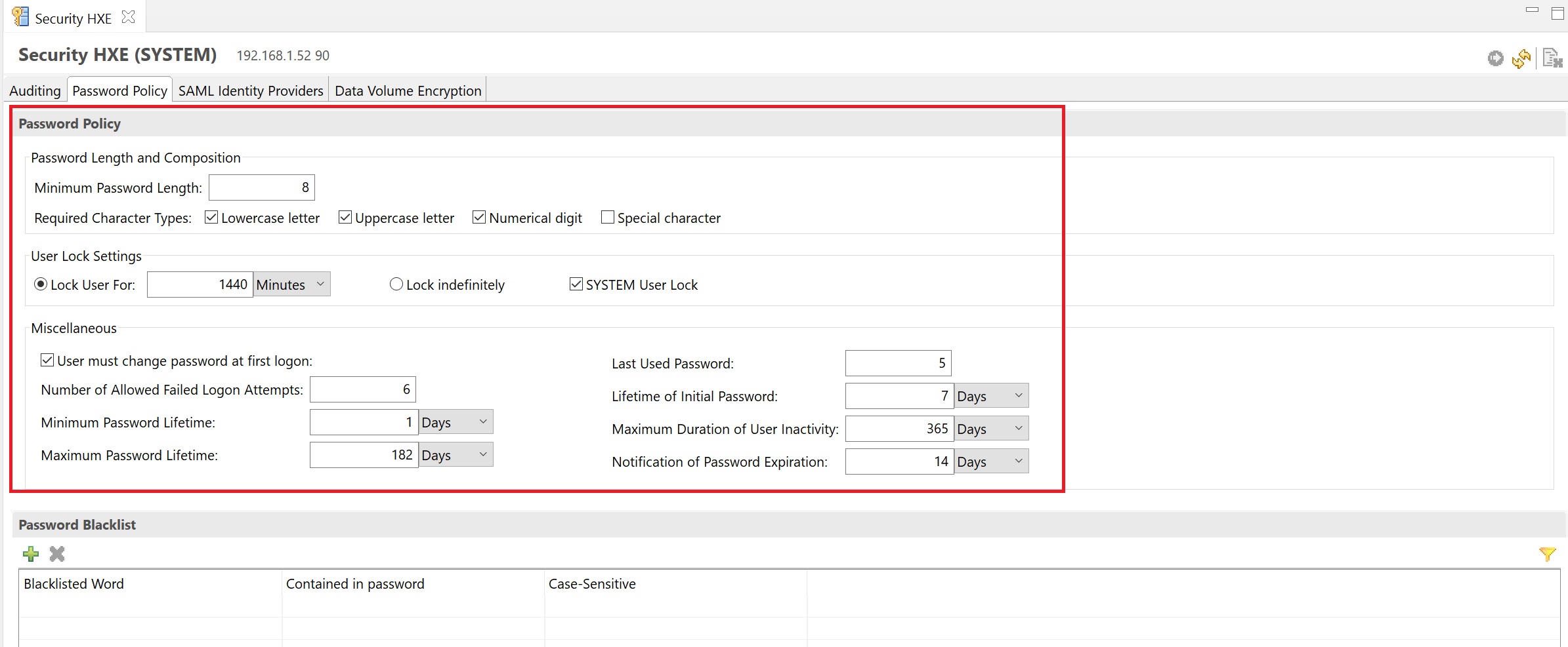 The password policy allows you to tighten password security, setting the length and strength of the password, also to set the failed login attempts.