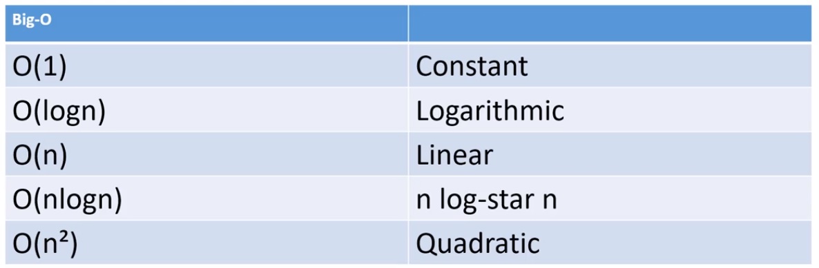 The big-O notation for the above is 2n + 2, the 2 is steps 1 and 2 and care constant, but steps 3 and 4 depends on the number of sugers (n) so we get 2n, we can see that the steps are linear. The are many big-O values but at basic level we would be using the below without getting to complex. The table below starts with the best time complexity to the worst time complexity. Although you might not really use Big-O notation when developing its still good to have a little understanding of it when picking an algorithm, you would pick the best time complexity algorithm first and then test. There are many graphs on the internet which represent the Big-O notation, this is a good URL as it includes both data structures and algorithms.