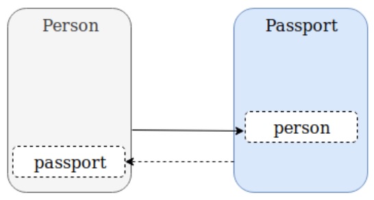 One-To-One relationship means that its only possible to have a one to one relationship for example a person can only have one passport number, NHS number or National Insurance Number, etc. You use the @OneToOne annotation and the @JoinColumn and the relationship is bi-directional. The main difference between a OneToOne and a ManyToOne relationship in JPA is that a ManyToOne always contains a foreign key from the source object's table to the target object's table, whereas a OneToOne relationship the foreign key may either be in the source object's table or the target object's table