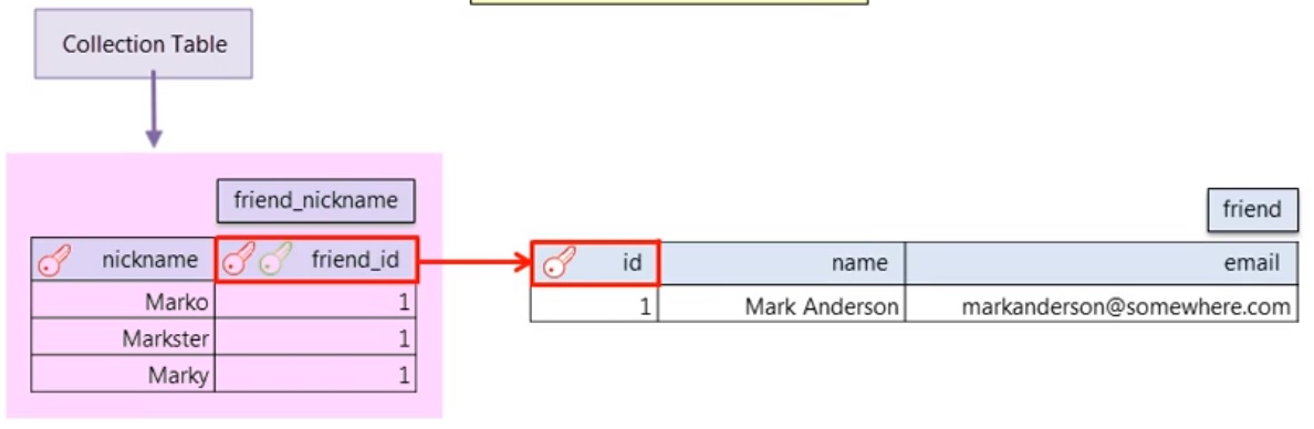 @CollectionTable(name = "friend_nickname", joinColumns=@JoinColumn(name = "friend_id"))