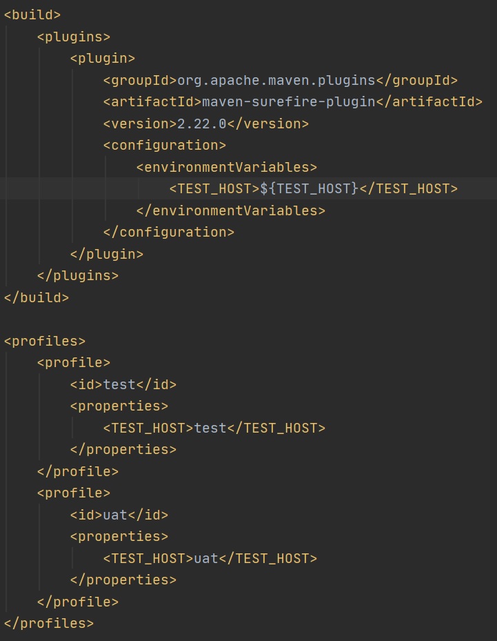 You can pass some environment variables on a profile basis, you need to updated the build property and then add the properties environment variable to the specific profile (see right screenshot), then in you code you can get to this varaible using the System.getenv() method.