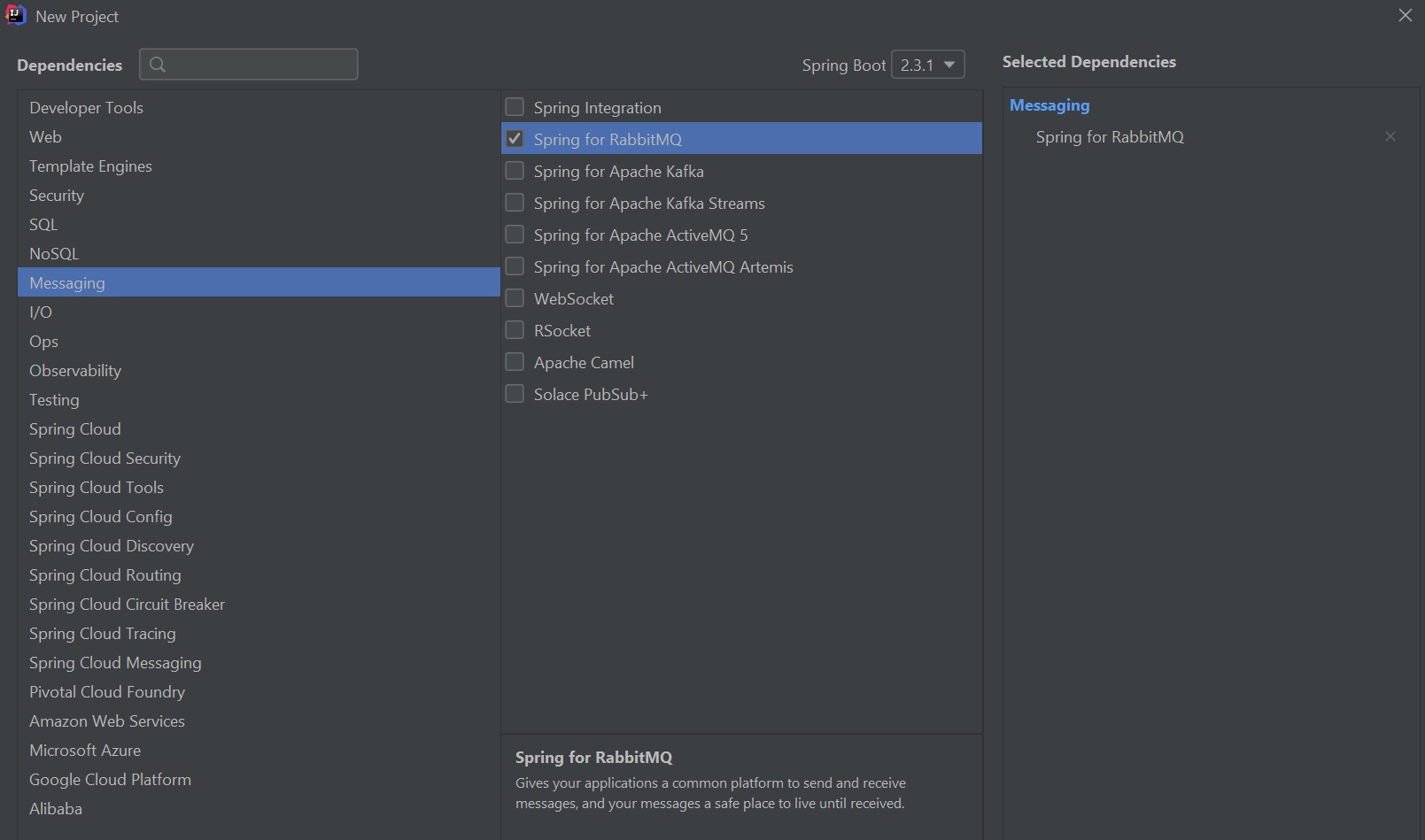 I am going to look at RabbitMQ using Java and Springframe work (both have very good support for RabbitMQ), there are other messaging broker systems like Kafka, ActiveMq and Kestrel which are all have similar aspects. RabbitMQ is a application to application messaging system, you can deploy it on-prem or in the cloud and can be configured to be highly scalable (offered by both Azure and AWS), it can be installed on many operating systems. It also offers the below: