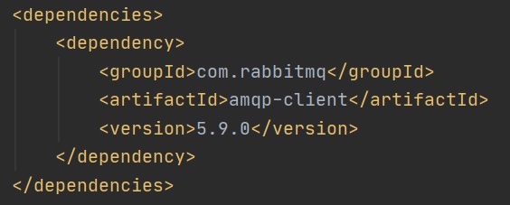 In this section I cover how to publish and subscribe to RabbitMQ using a standard Java application (Java 11), firstly you need to add a dependency as per below