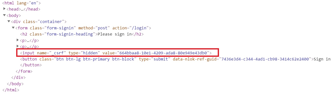 By default CSRF is enabled but you can turn it off while developing (right-hand screenshot) but you should not do this for a production site, you can see CSRF in action by looking at the default login page (left-hand screenshot), the form has a added input element which is of type hidden and has a name of _csrf, the value is a csrf token that can be validated when the form is submitted, this tells the application that the form was actually created by this Spring application and not a forged HTML page.