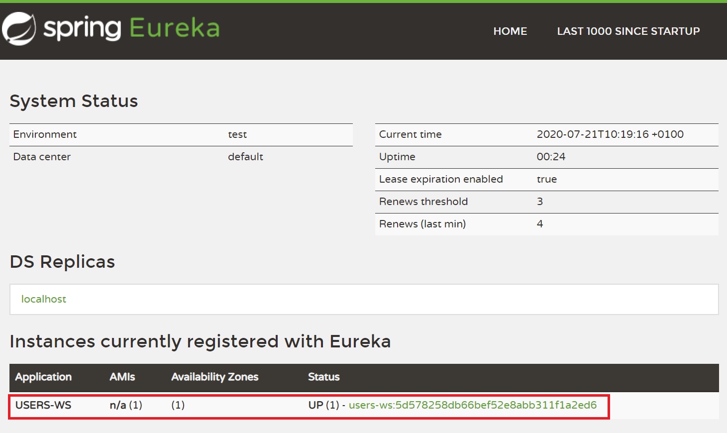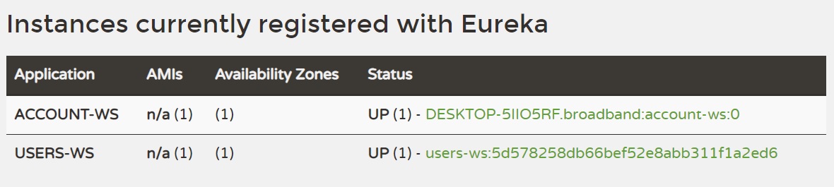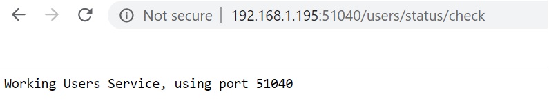 If you click on the users-ws... link you will get the port that the client has been assigned, I have created a basic controller to return some text using the URI /users/status/check as you can see below, bear in mond we are directly going to the application service later we will setup the load balancer which will use the Discovery Service to obtain IP and Port numbers of the registered services.