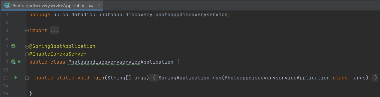 Next we need to enable Eureka in the application start up using the @EnableEurekaServer annotation, as per below
