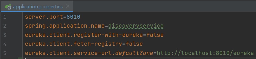 Lastly we need to setup a few properties as below, we define a specific port and give the application a name, then we disable the client features and then finally set a URL which the client will use to communicate with this service.