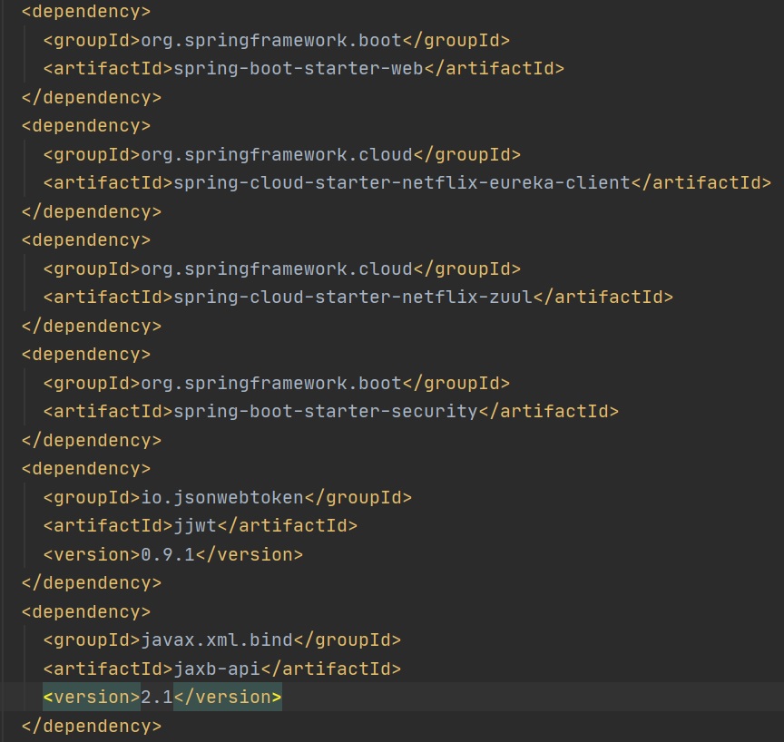To setup a Zuul Gateway we create a project and pull in the below dependencies, we need the Eureka client (will need to communicate with Eureka) and Zuul, I have also got Spring Security and JWT.