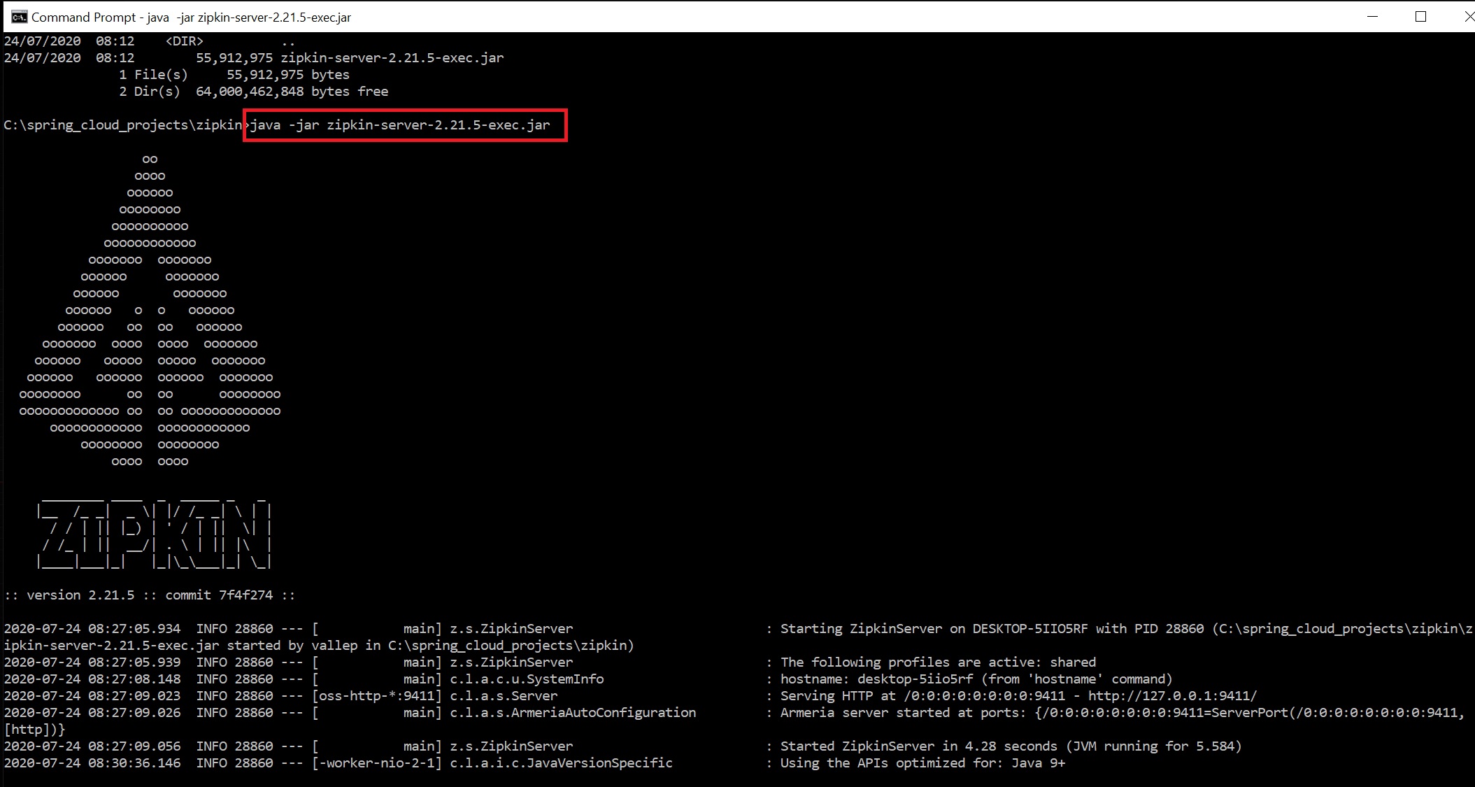 Additonally we can use the zipkin server which will collate all the log information from all the microservices.