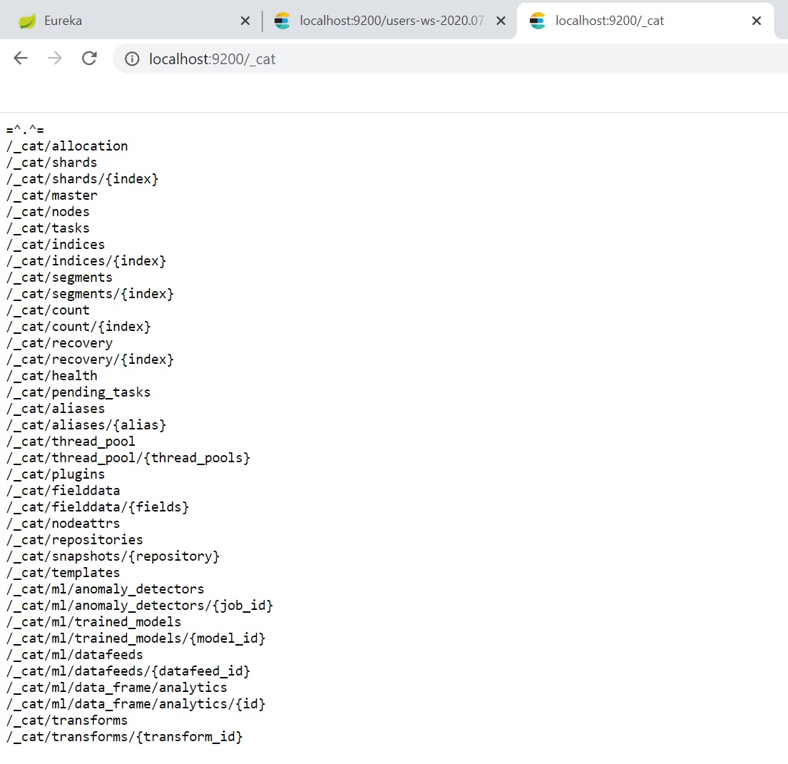 To get a list of the logfiles that are hooked into elasticsearch use the URL http://localhost/_cat/indices