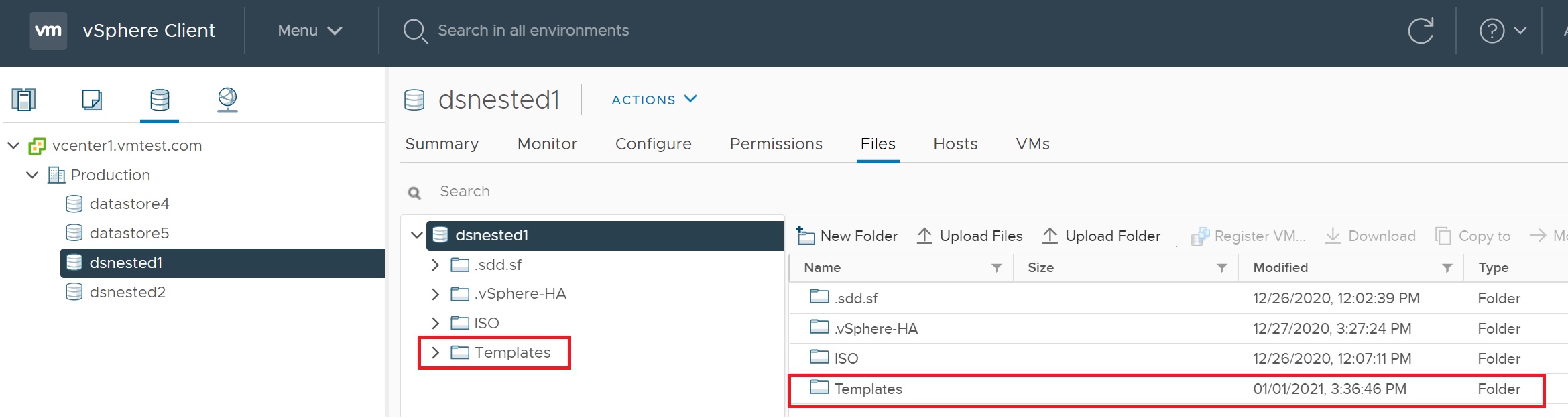 I generally create a folder called "templates", from the "home page" in vCenter select "VM's and Templates", select your data center (in my case it is called production), and right-click, then select new folder and name your folder.