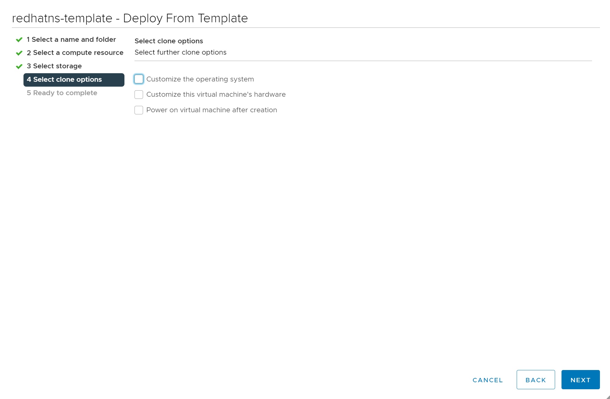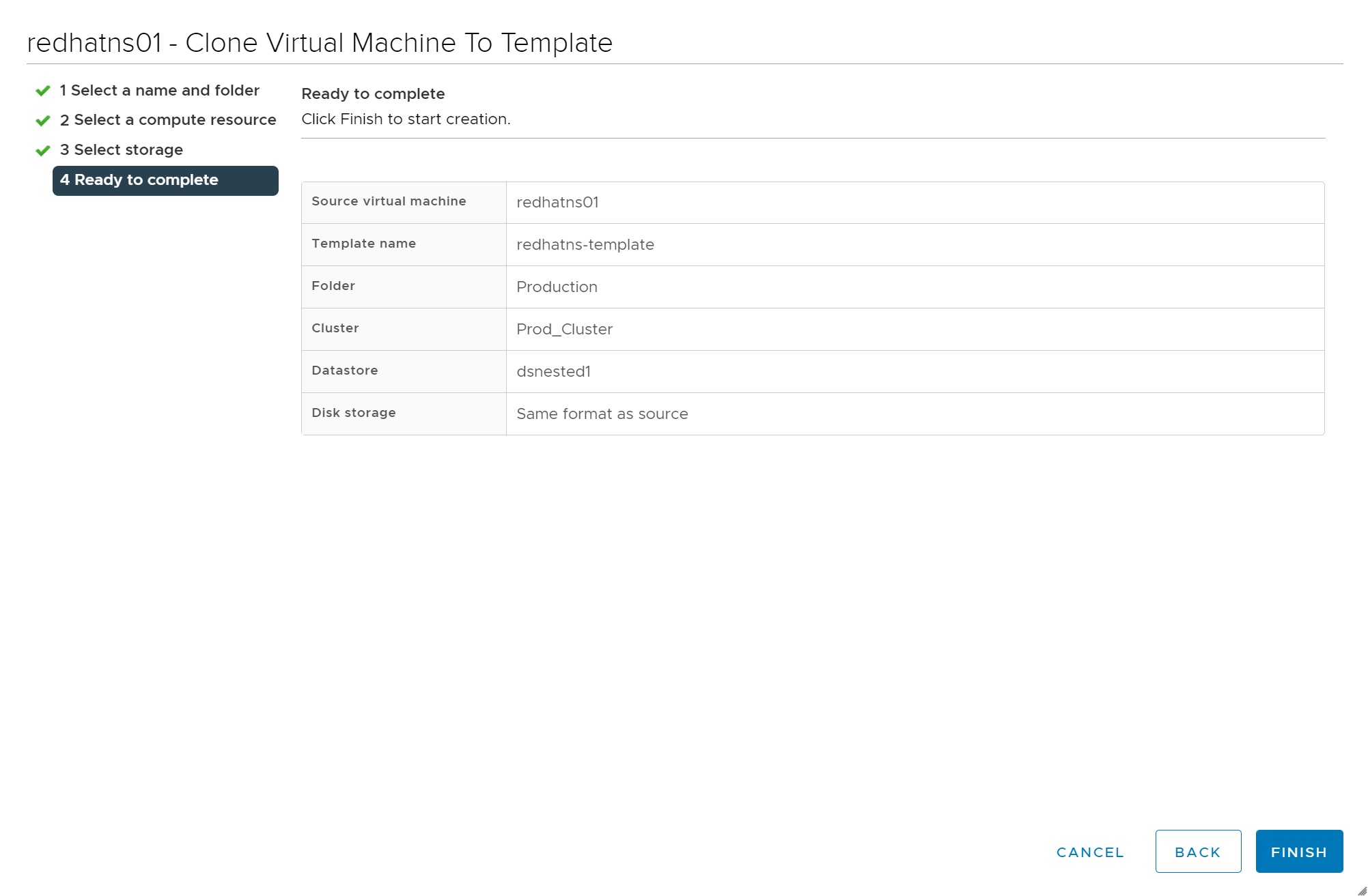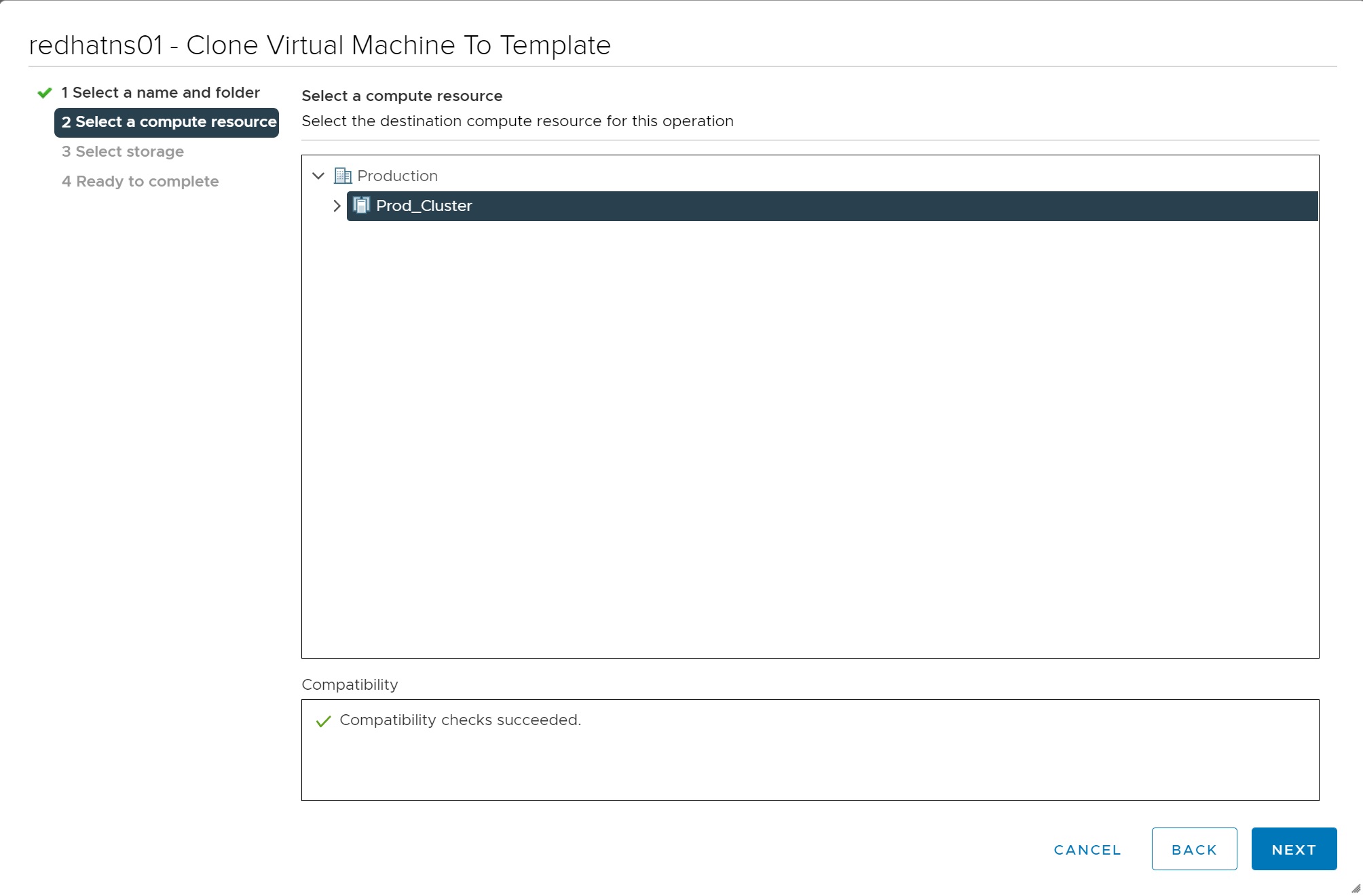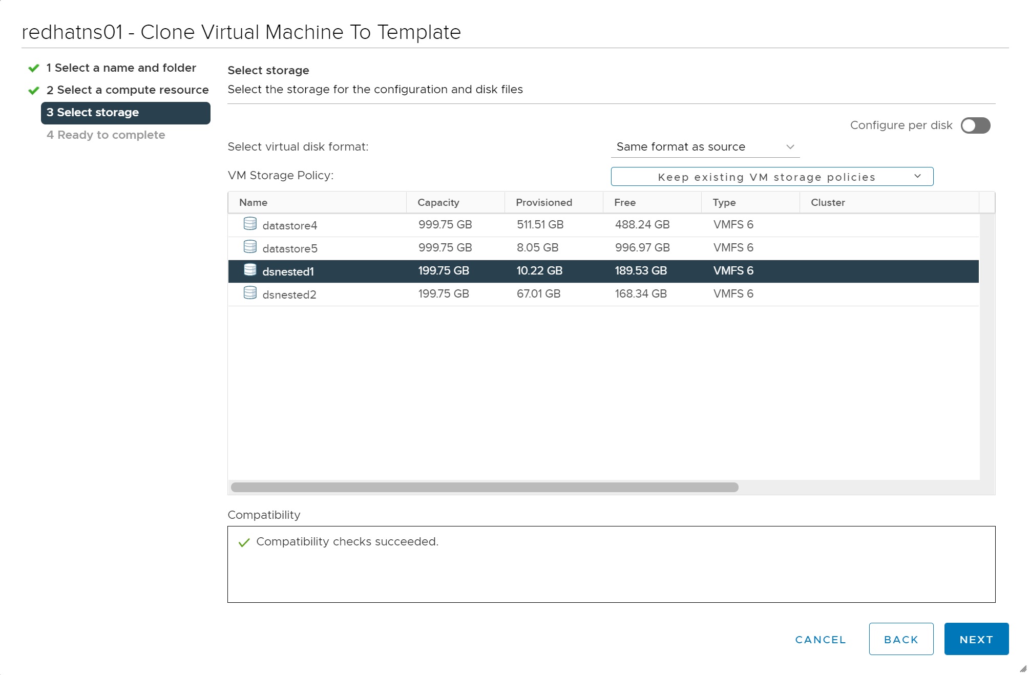 Next we select the storage where the template will be stored