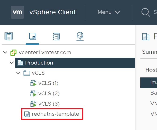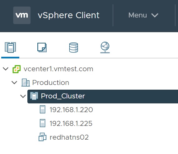 Once finished you will see the newly created VM in the hosts and cluster section