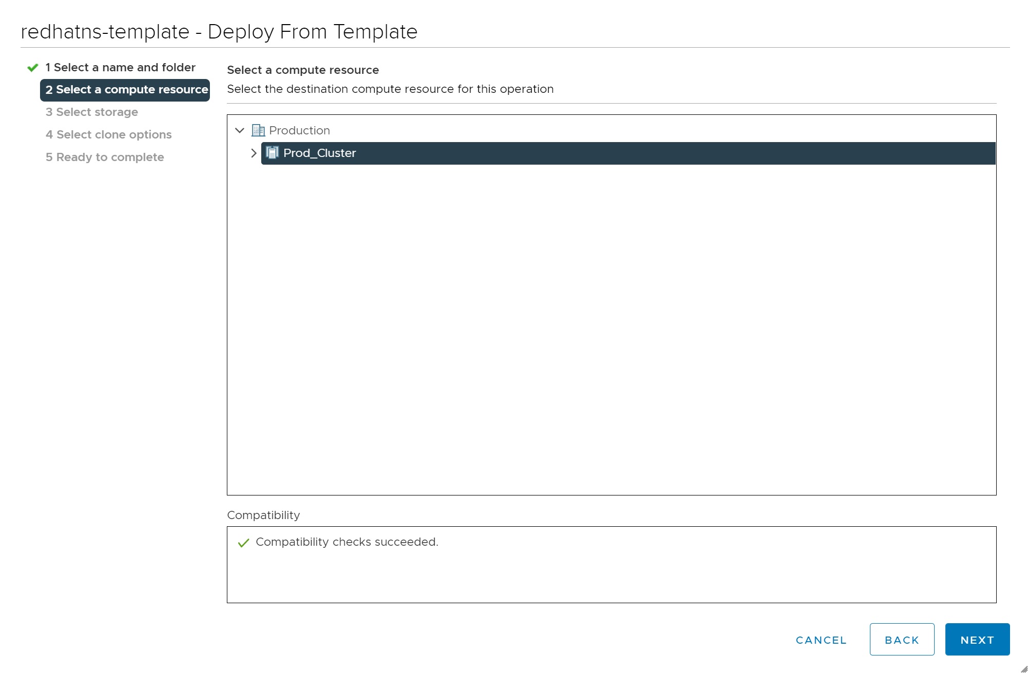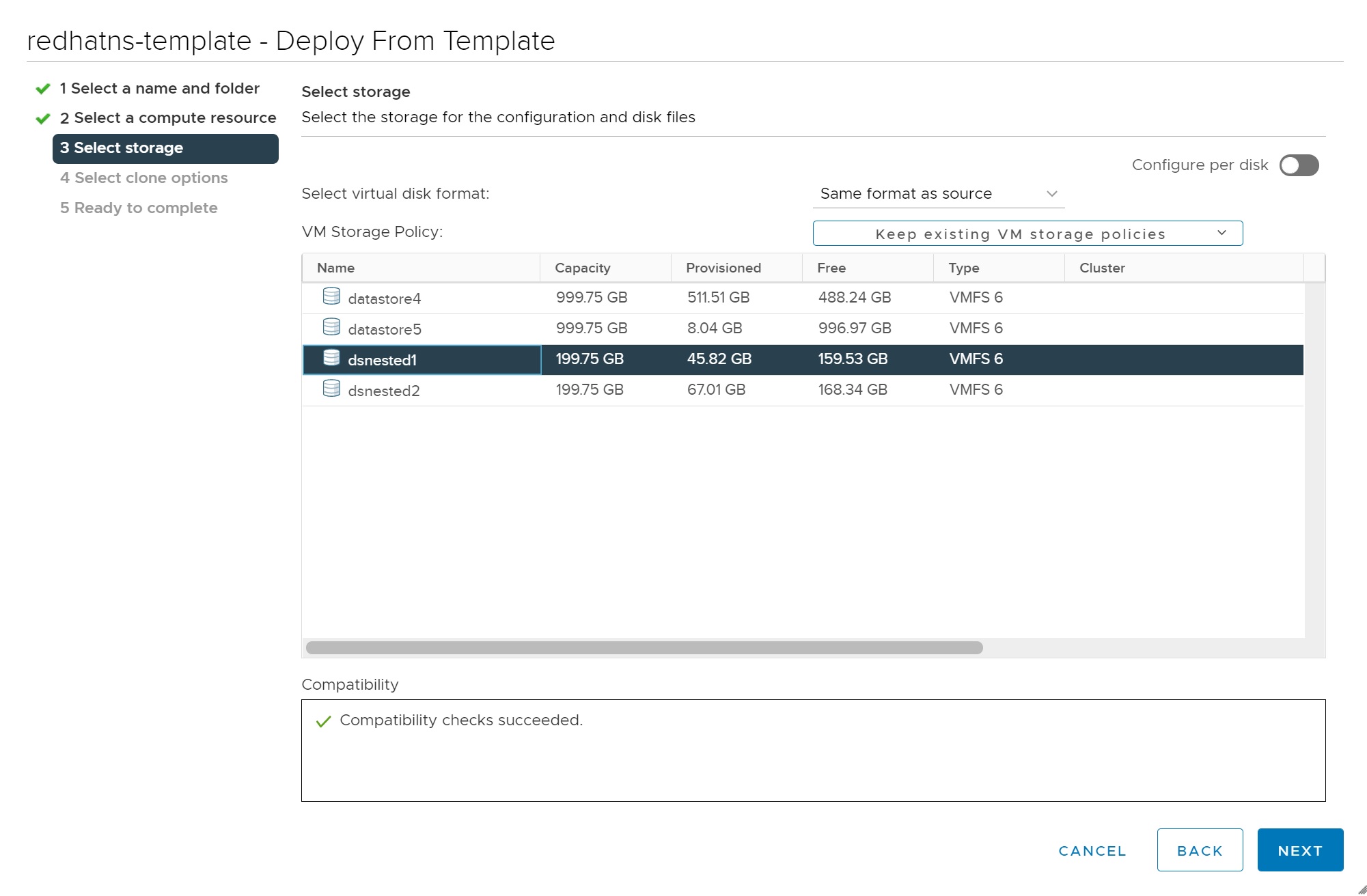 Next select the datastore where to store the VM, making sure its a on a shared datastore