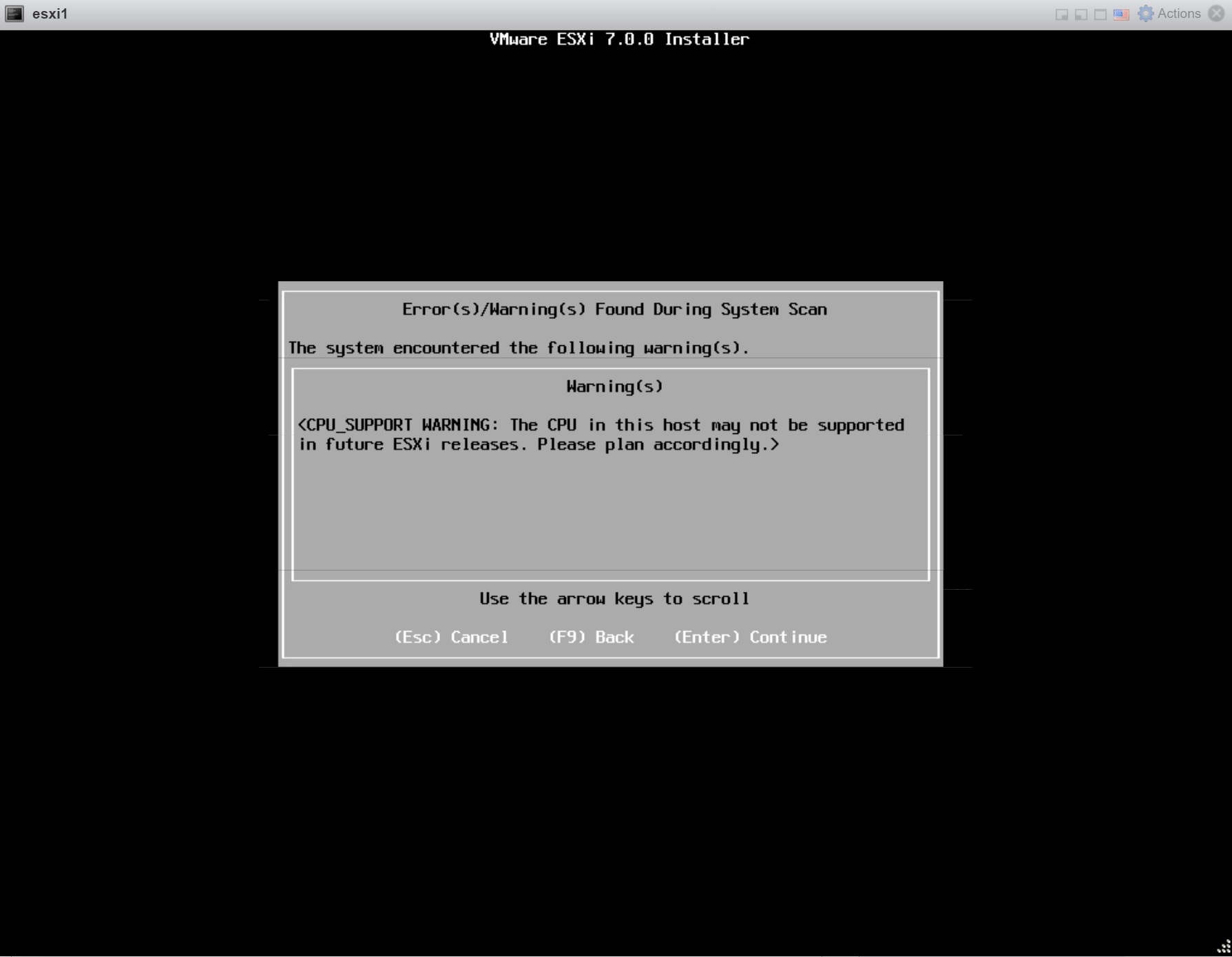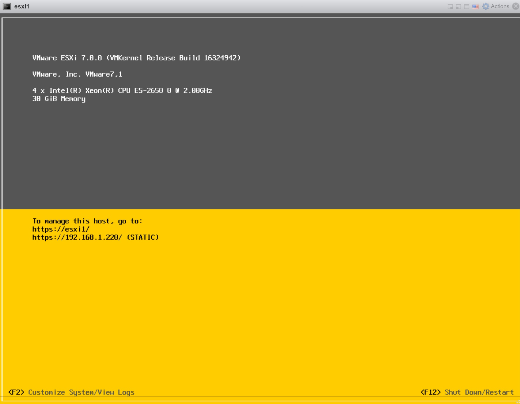 When starting the nested ESXi server you are presented with a normal ESXi installation