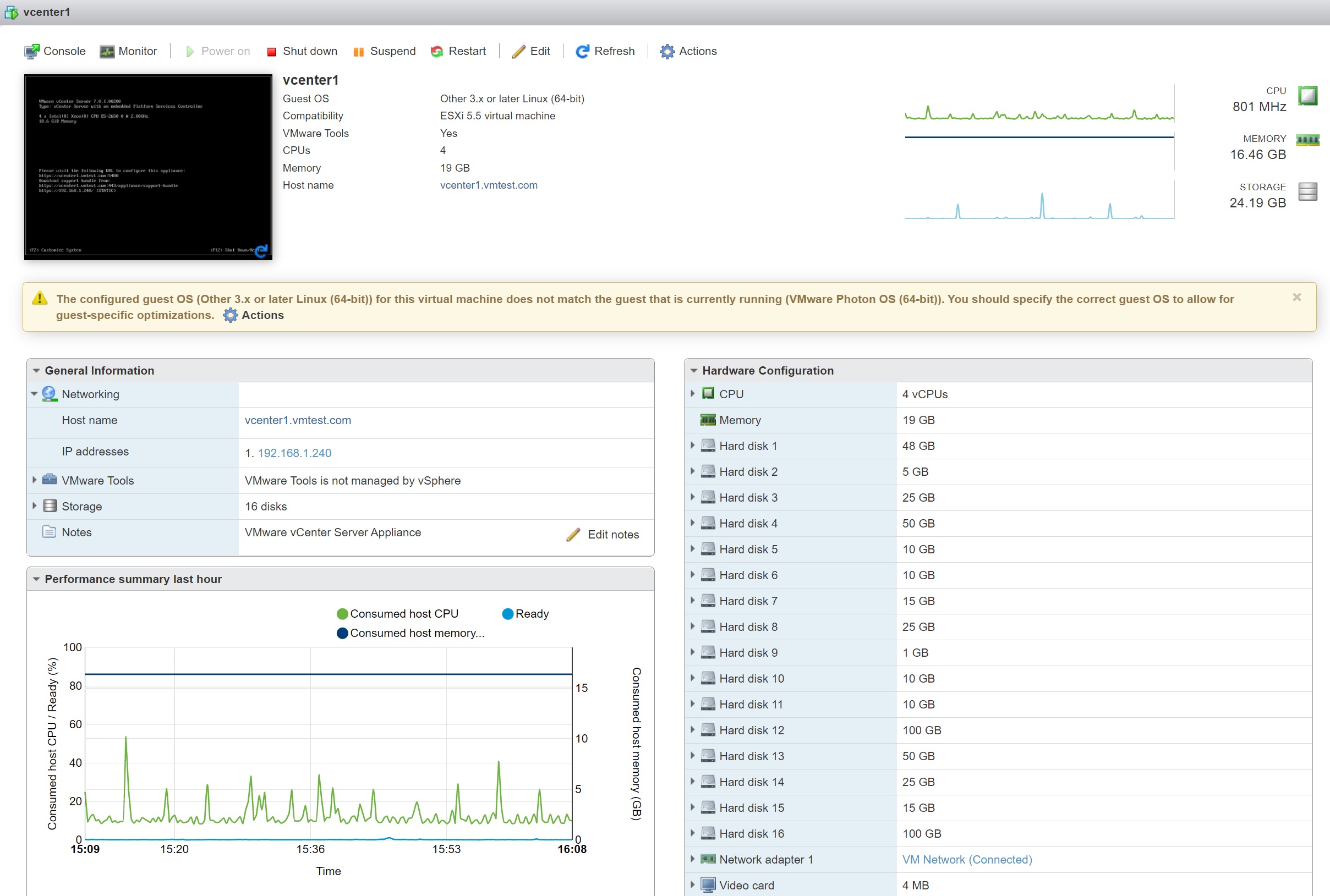 I have already provided the vCenter installation above but display what was configured by the installation below