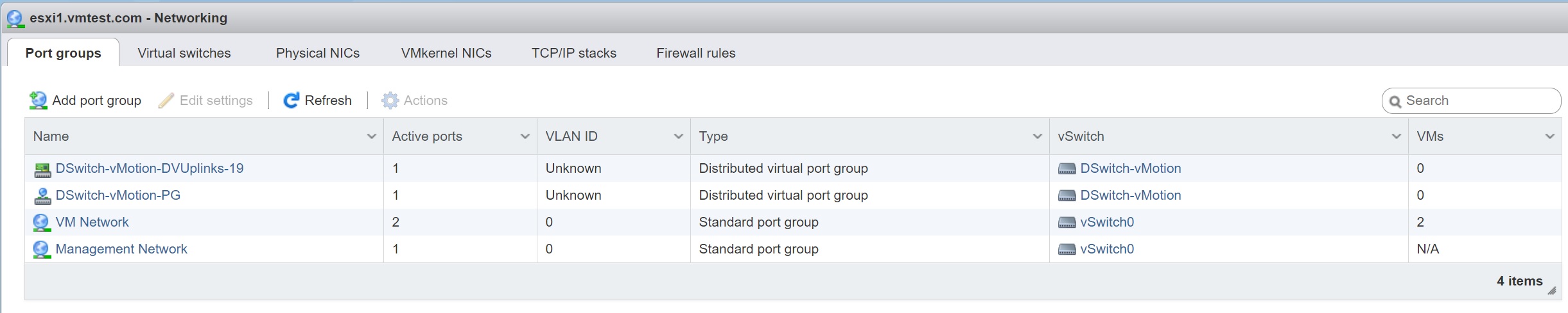 I created a vMotion dynamic switch to which all vmotion activity will travel across, I have left the management network as per the original setup of the server. Notice no additional networking has been setup for the NFS storage as I have tried to keep things simple but you can use other NIC's to reduce load and increase performance.