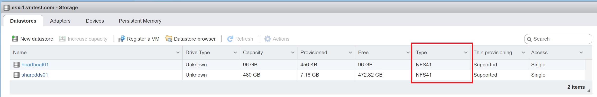 Finally I create a NFS datastore called datastore4 that used the 1.41TB NFS volume, this is were the vCenter servers will be stored, notice the type is NFS41