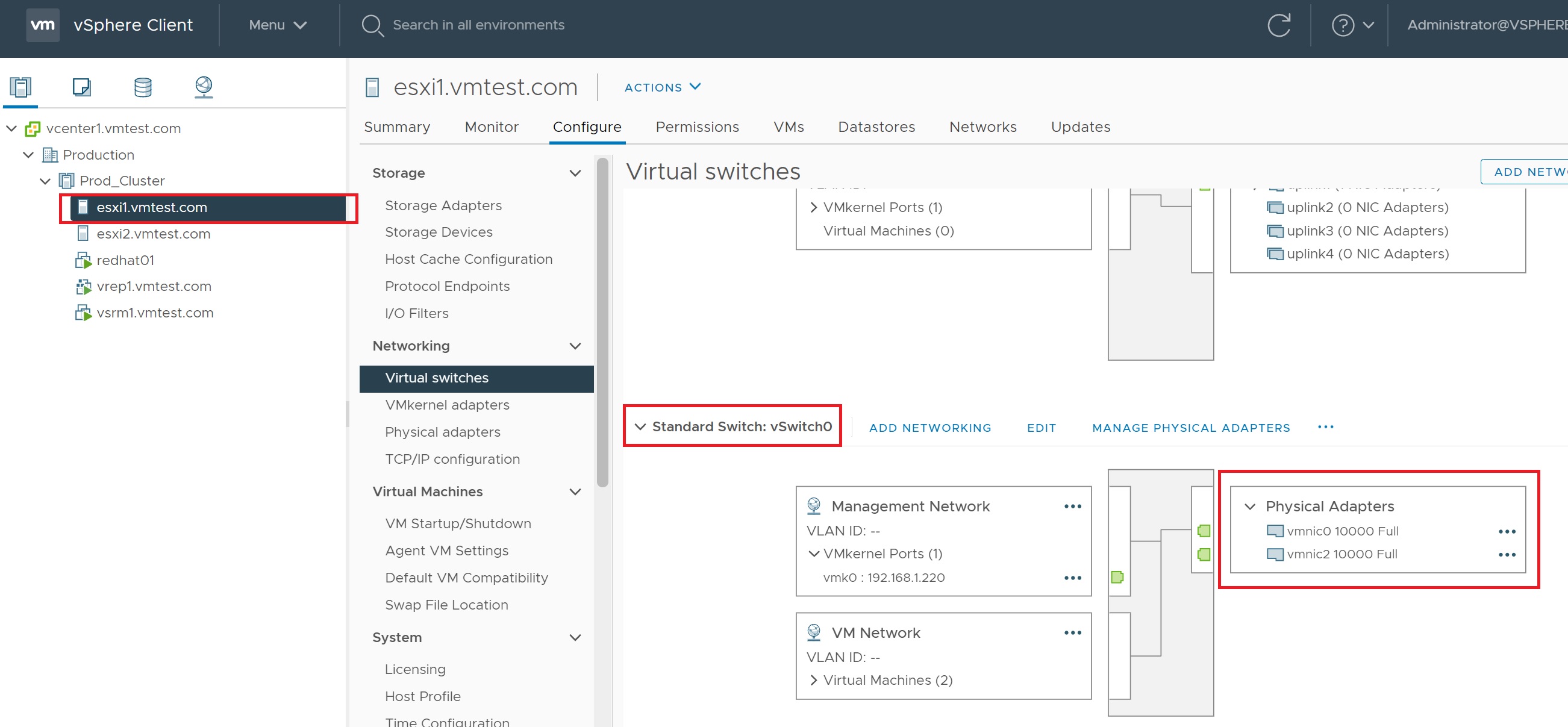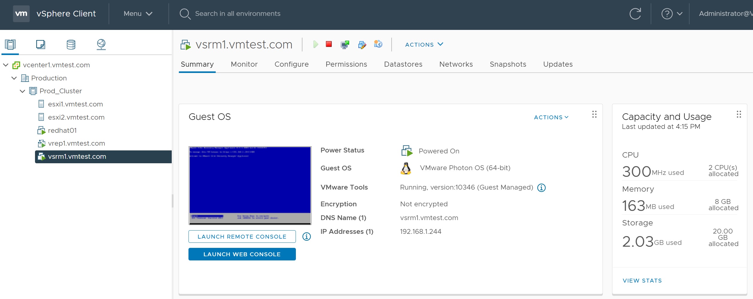 I have also installed a RedHat 8 VM which will be used to test the Replication and SRM, we will see this in the Replication and SRM sections