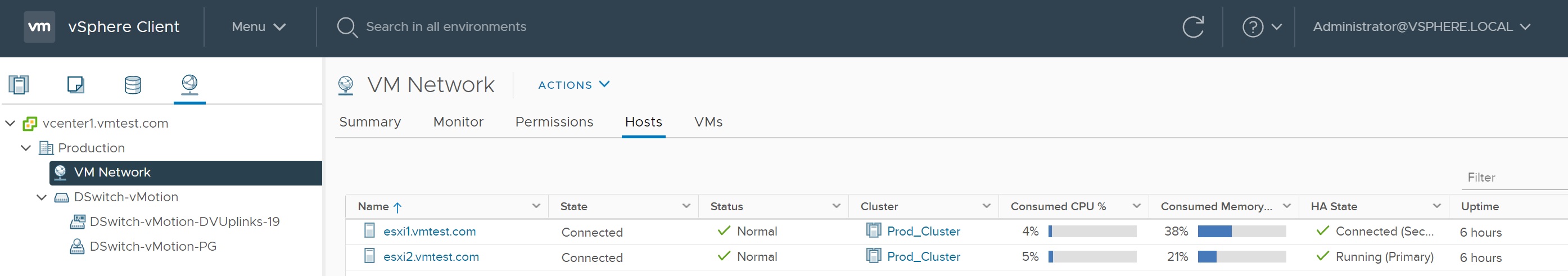The vMotion network has the vMotion service enabled which the vCenter configured for us.