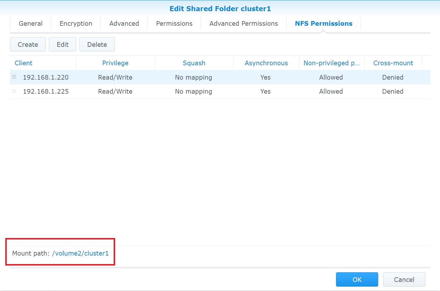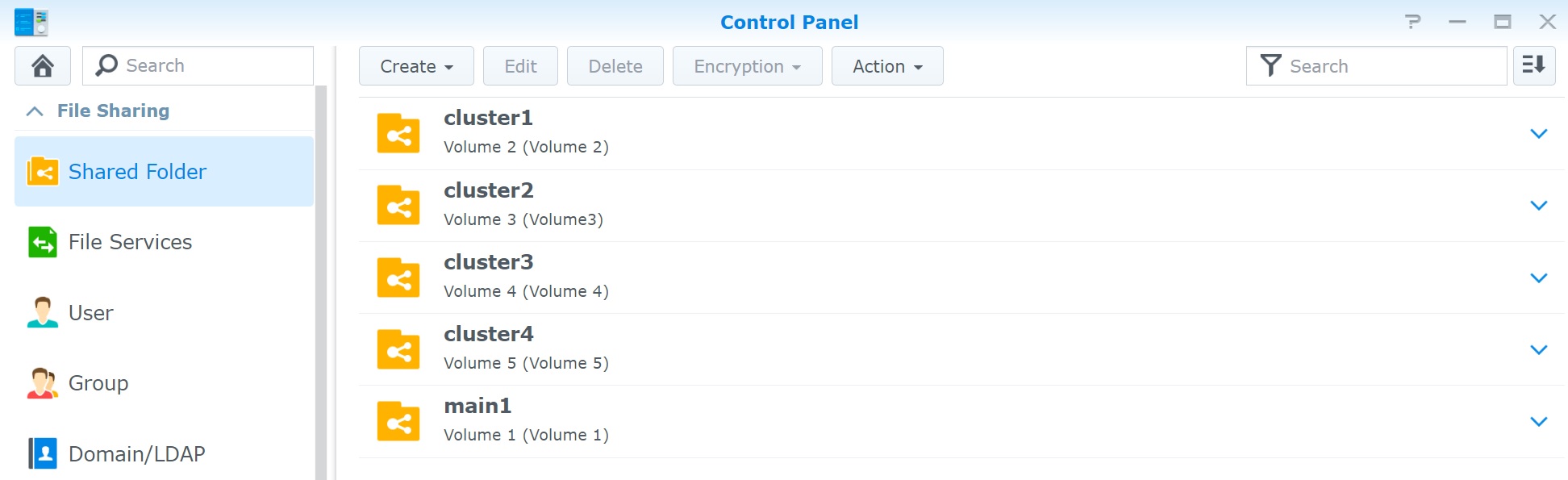 Next I simply create NFS folders on the Synology SAN that will be mounted by the various ESXi servers in my setup