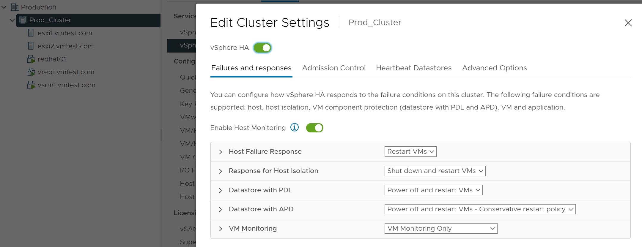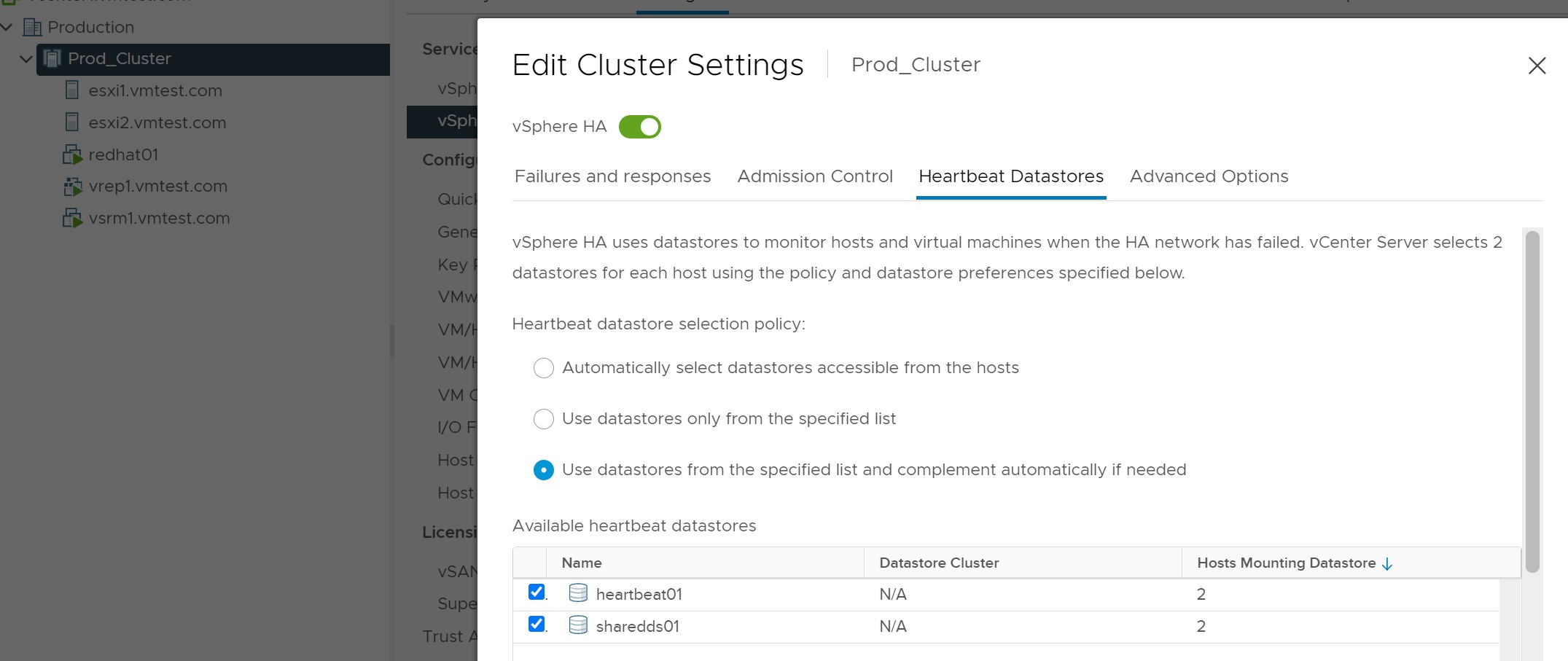 I also specified the datastores that can be used to keep the heartbeats of the cluster.
