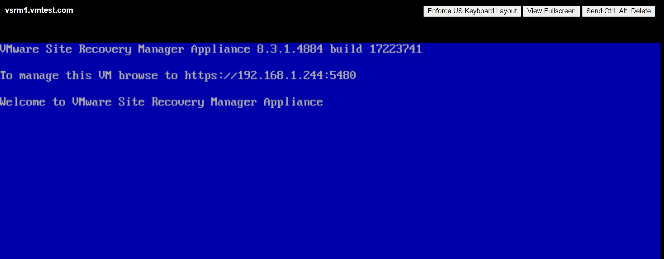 The console login is as below, it also identifies the SRM GUI interface information in my case https://<IP address or FQQDN>:5480