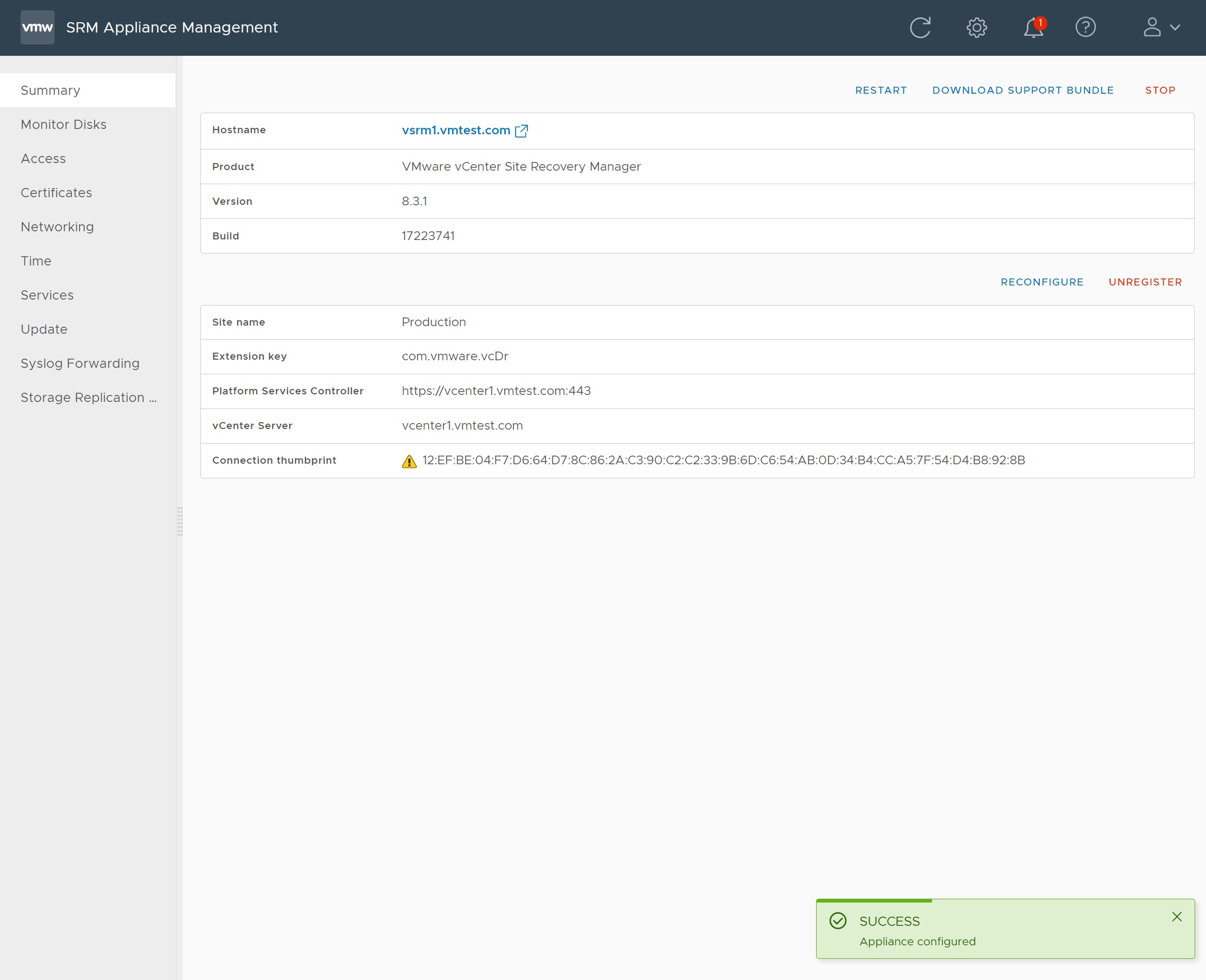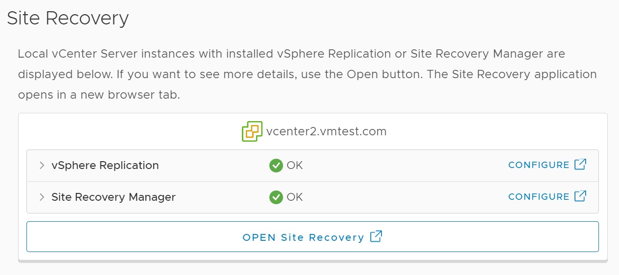 Now if we return to the vCenter and the Site Recovery menu you can see that both the Replication and SRM servers are configured and are in a OK state.