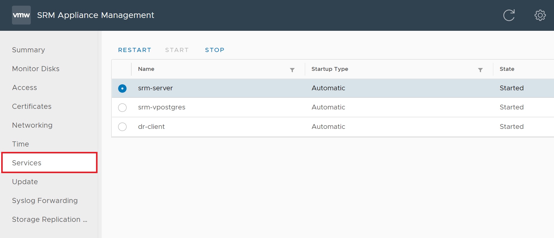 Finally the SRM VM is built but not started, click on the start green button and give it a fews minutes to allow the server to start and start its services.