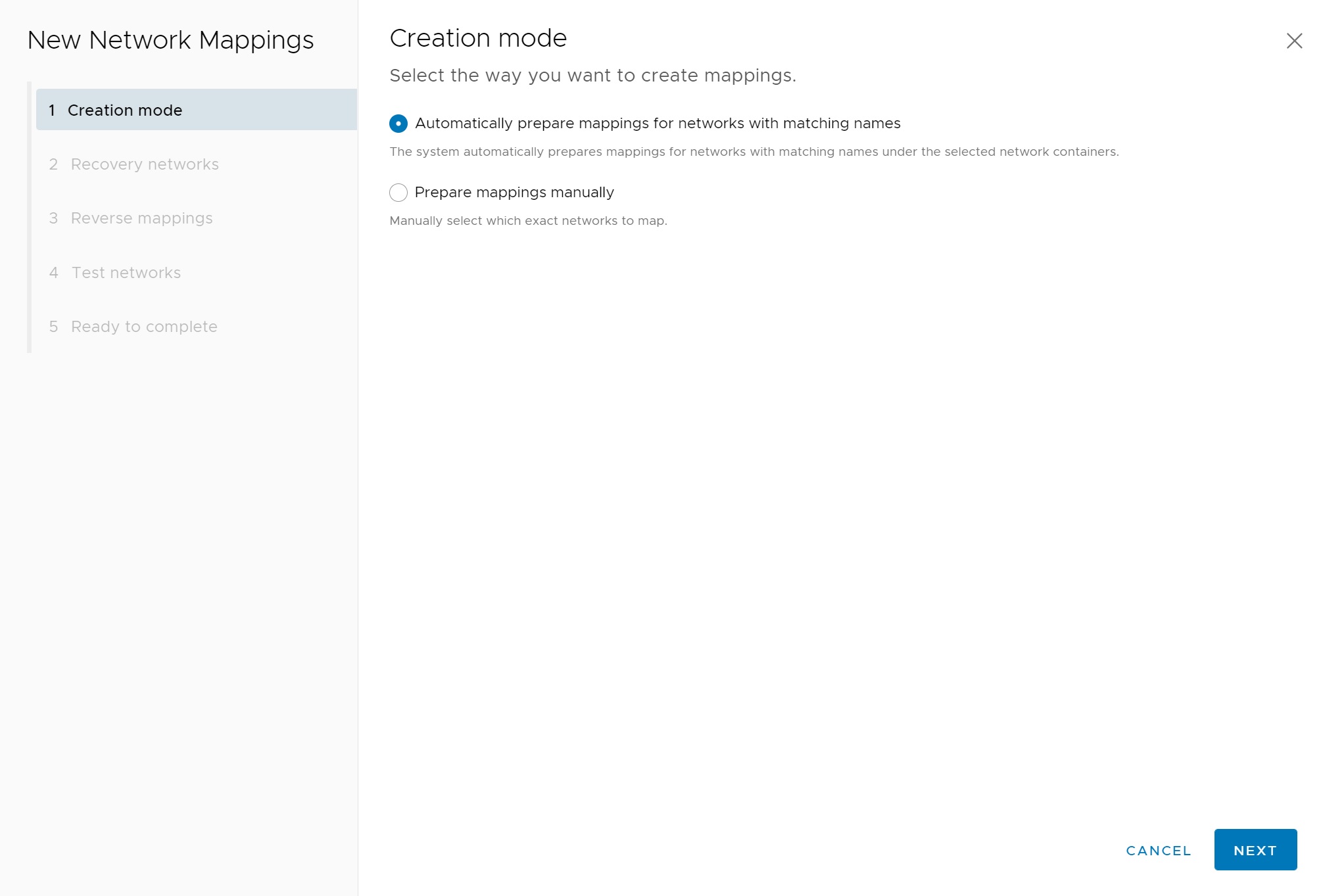 We start by configuring the network mappings, select the network mappings tab and then select NEW, we will be taken through a number of setup screens