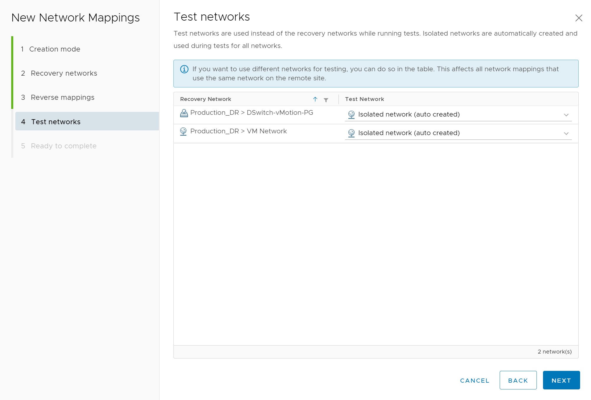 Its a good idea to create test networks when and if you want to perform a test recovery of a VM, this means it will be isolated away from the LIVE VM, here I used the default values but you can use other networks if you want to try and connect to the Test VM