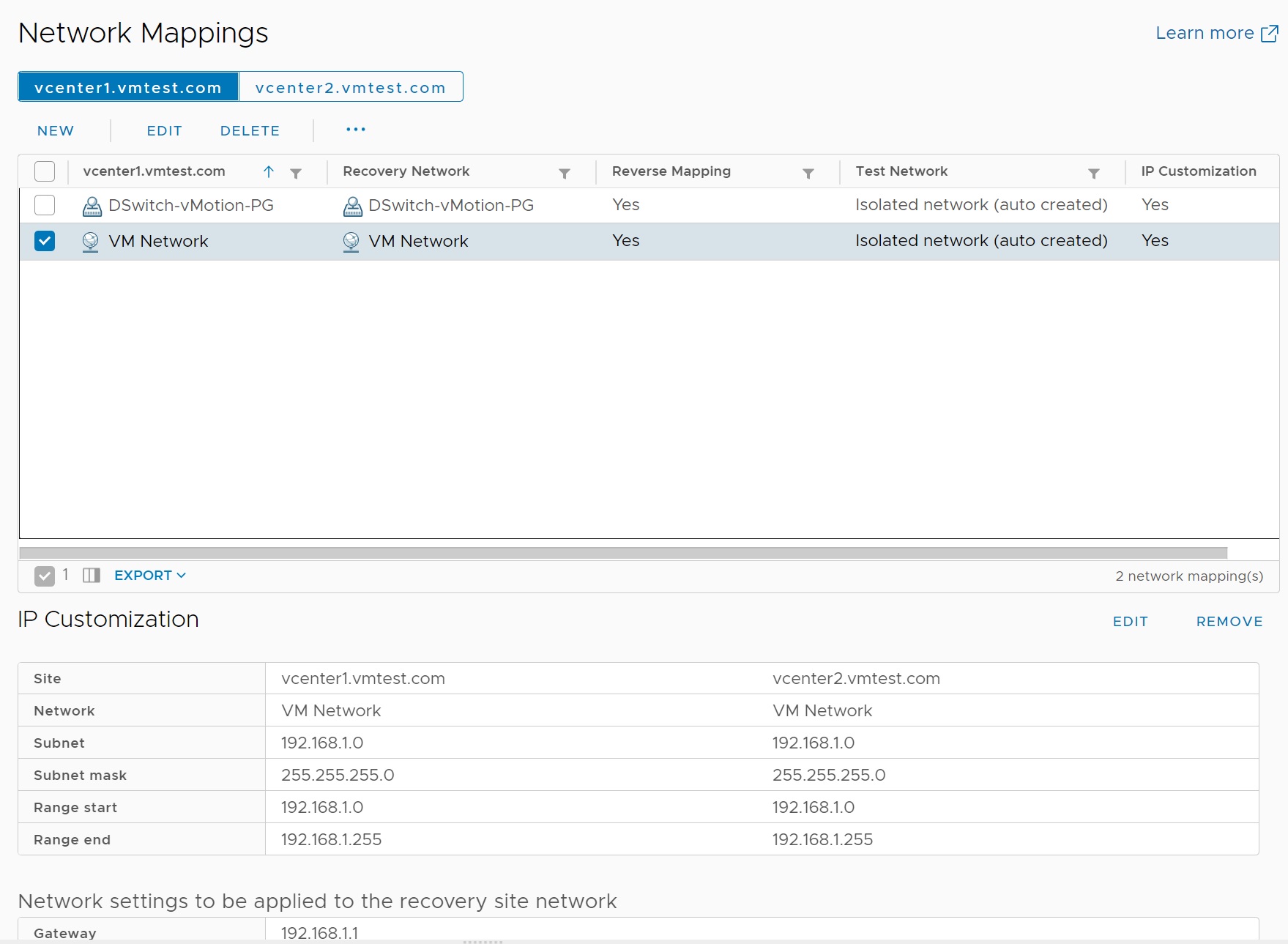 Next we identify the networks that will be used for recovery, try and use more than one network for redundancy. Once identified don't forget to select the ADD MAPPINGS button