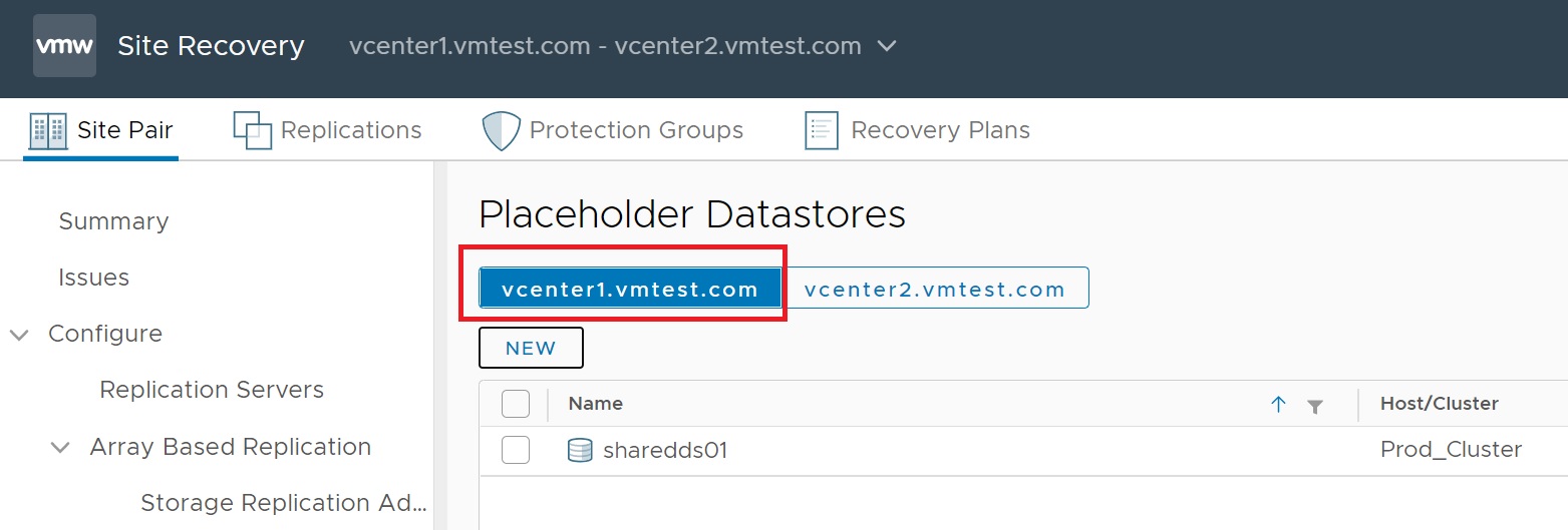 Returning to the pairing screen you will notice now that we have the Site Recovery Manager pairing, which you will see a protection group and recovery plans fields.