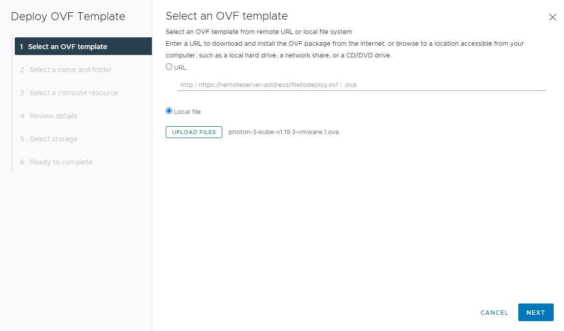 Now we can deploy a OVF template using the ova file we downloaded earlier