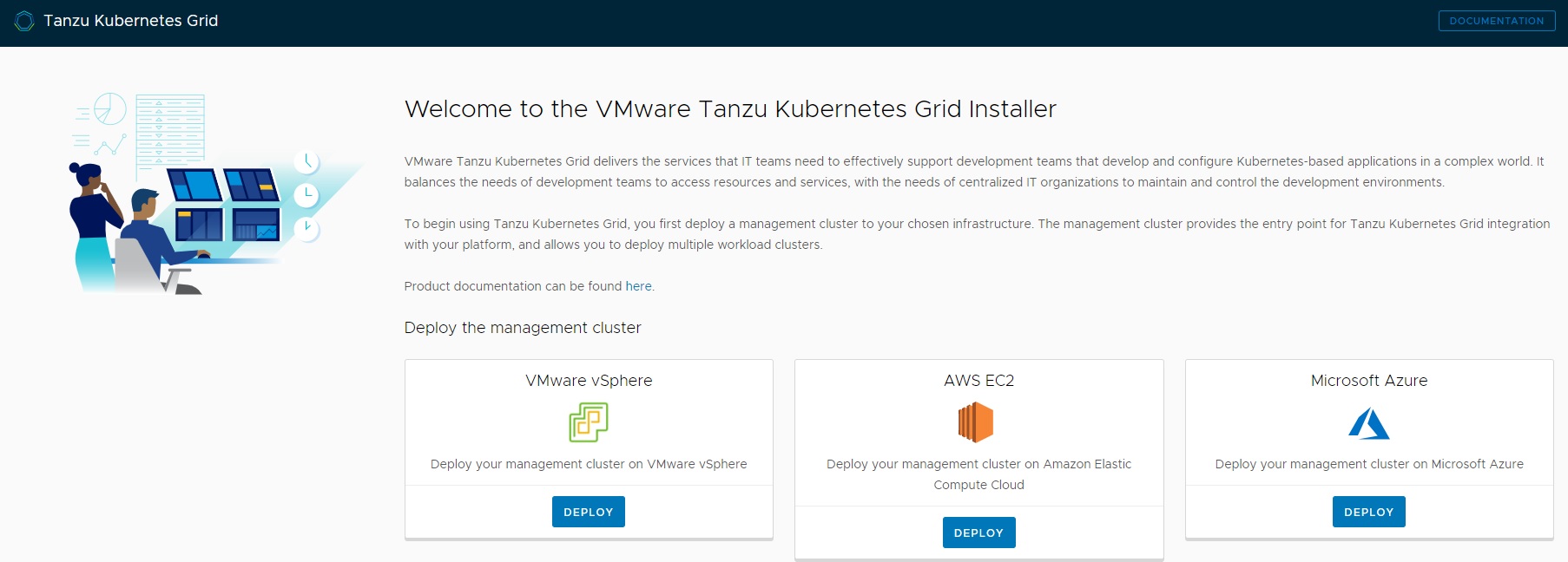 A browser will open up running the GUI installer, as you can see you can install to either a VMWare platform, AWS or Azure. click the VMware vSphere deploy