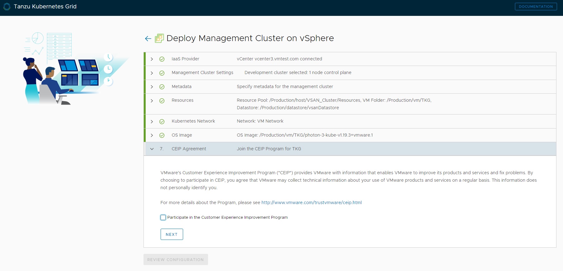 At the bottom we see the DELOY MANAGEMENT CLUSTER button to start the installation, or you can edit the configuration