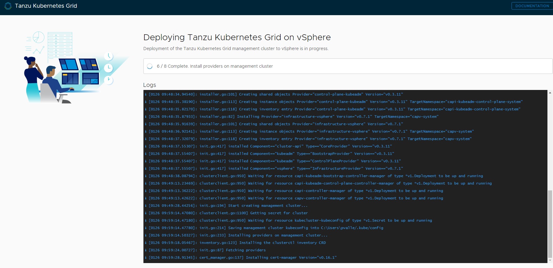 If you return to the command prompt you can see the progress and where it went wrong if you do have issues, also it tells you the next steps that need to be taken, which is to create a workload cluster.