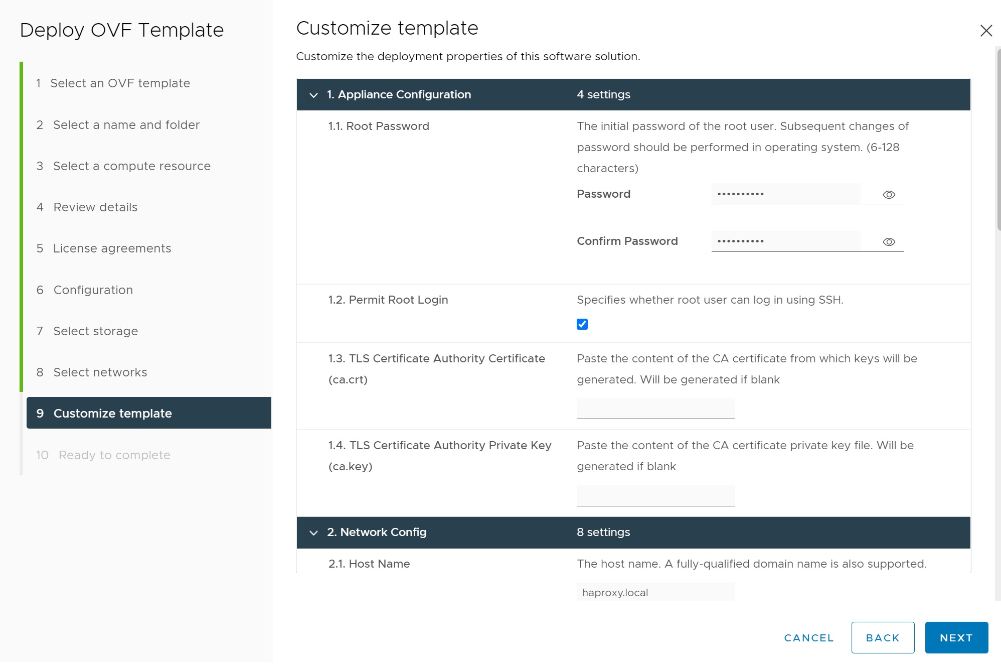 Then we need to setup a HAProxy, you can download from here, this is where most of the networking interaction will happen, if any network needs to access my internal network then it will go via the RedHat router. Now we will create the HAProxy VM, we select to deploy the template selecting the file