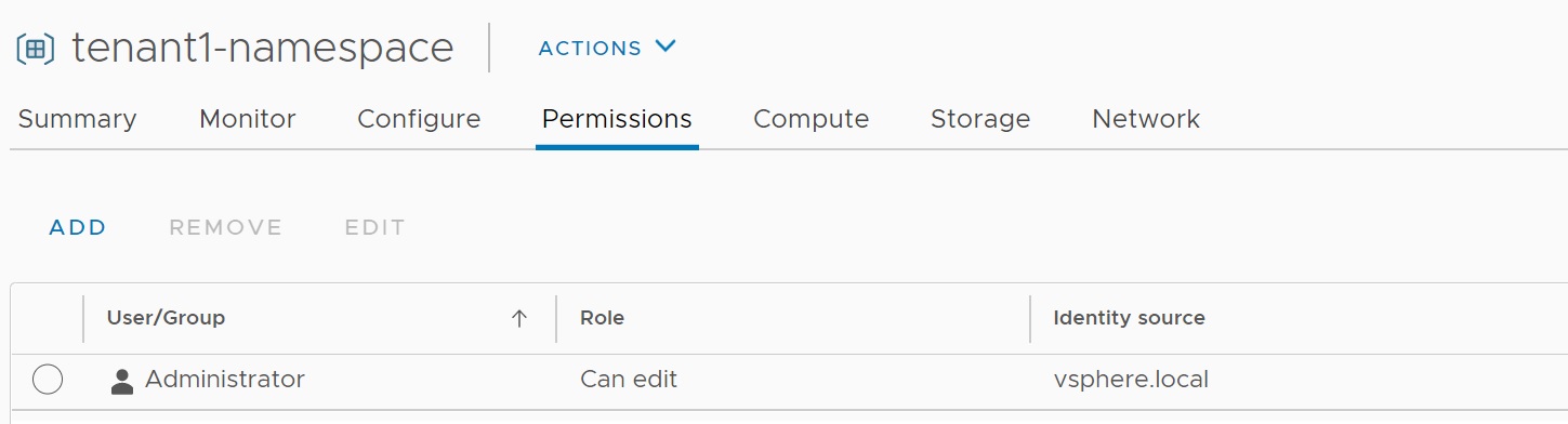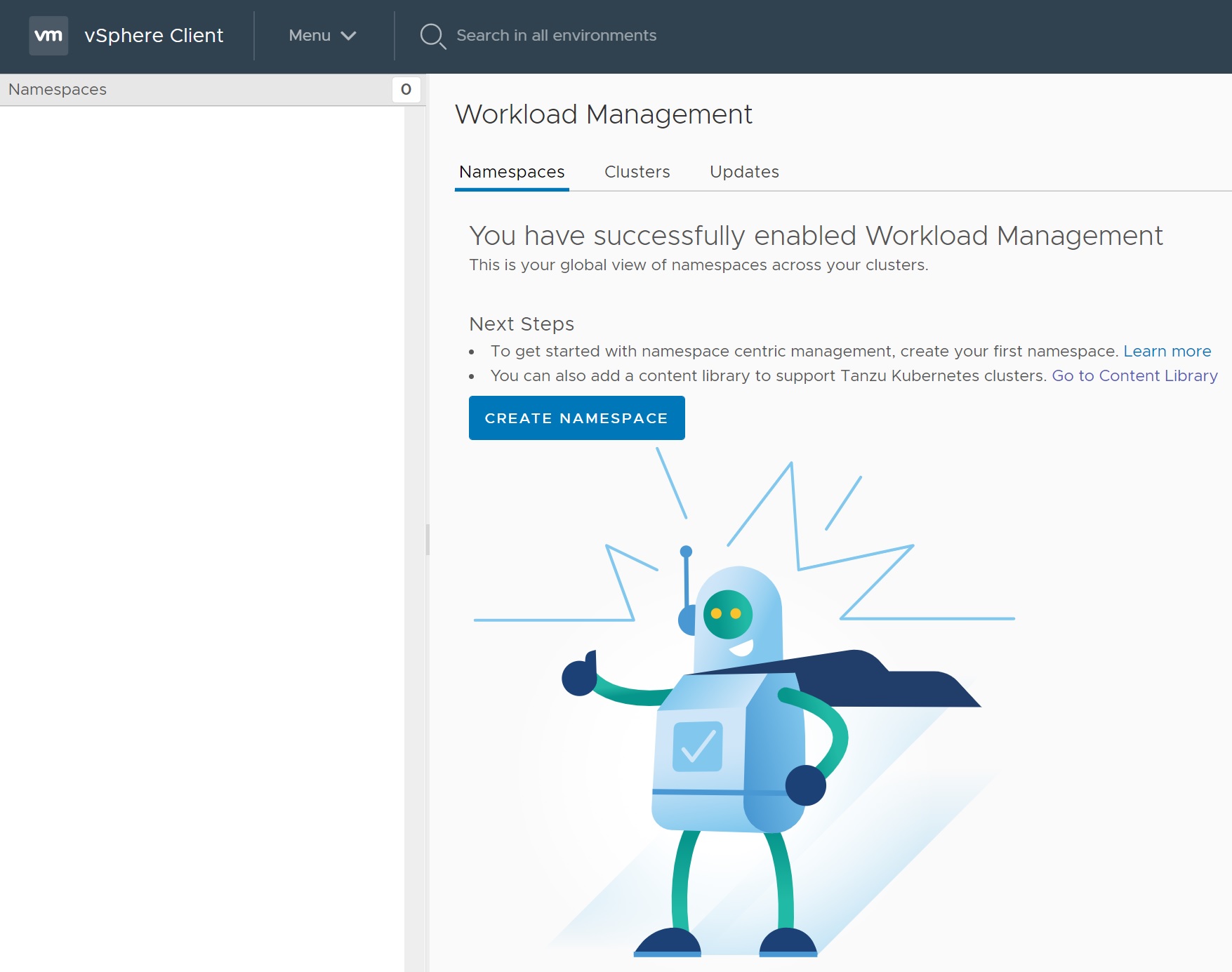 Returning to the workload management -> tenant1-namespace page we can see that we have one Tanzu Kubernetes cluster, select the view all to get more details