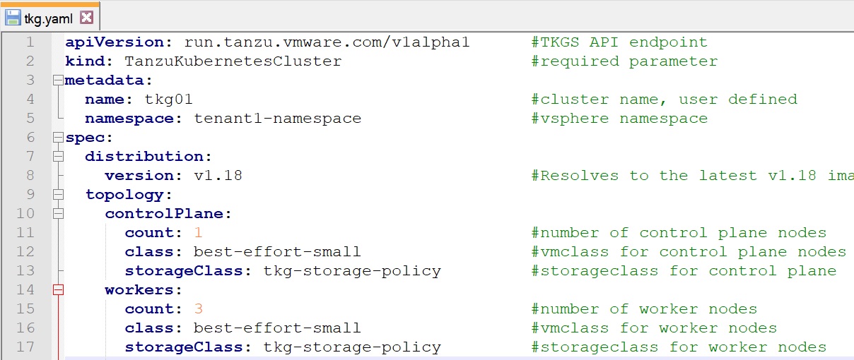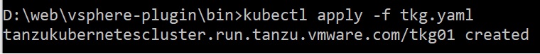 Lets create a workload cluster, we can create a yaml file with the configuration details and then use kubectl to apply it, I create one control plane and three worker nodes, I use the best-effort-small class to create the bare minimum as this is a test lab, I also select the storage class using the tkg_storage_policy we created earlier.